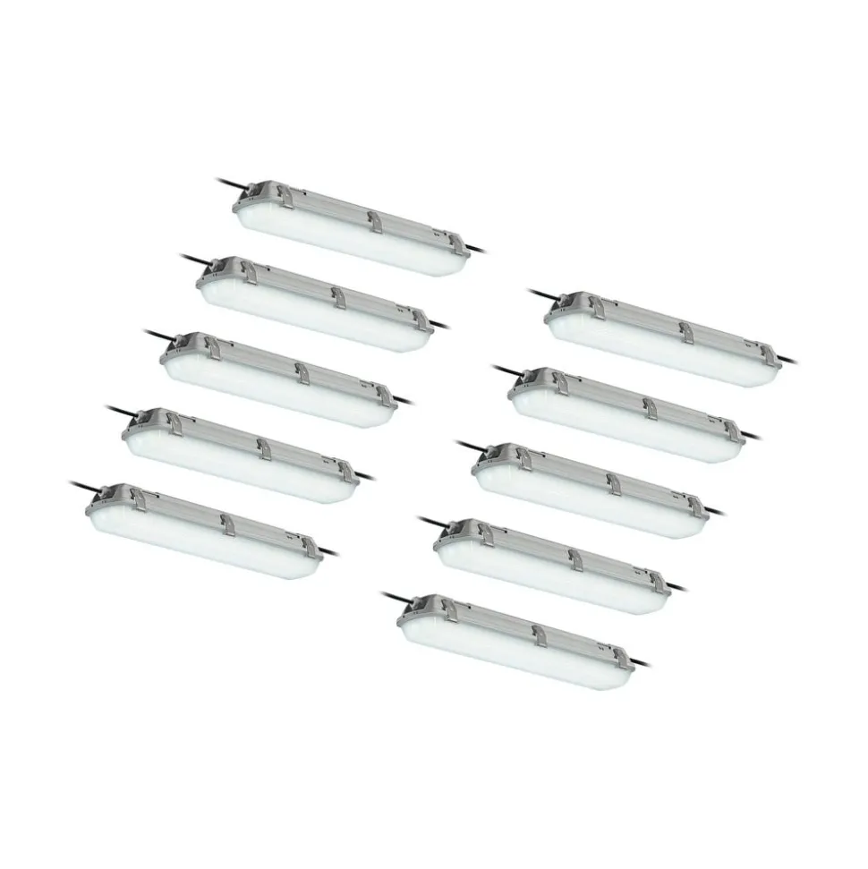 Rao LED opbouwdiffusor voor gebruik in vochtige ruimtes, IP65, instelbare lichtkleur Deze LED opbouwdiffusor is een echte aanwinst op het gebied van heldere verlichting, vooral in commerciële ruimtes of in vochtige ruimtes rond het huis en het erf, bijvoorbeeld de garage of een kelder. Dankzij de hoge beschermingsgraad kunnen vuil en vocht de diffusor nauwelijks beschadigen en daarom is de lamp ook geschikt voor ruimtes waar de luchtvochtigheid hoger kan zijn. De LED’s zijn bijzonder efficiënt en bieden voldoende helderheid met een relatief laag energieverbruik. Hun licht flikkert niet en voor de installatie kun je kiezen uit drie lichtkleuren die je kunt selecteren met de geïntegreerde DIP-schakelaar. Dankzij de hoge mate van schokbestendigheid is Rao een bijzonder robuust armatuur – Doorvoerbedrading mogelijk – IK08 mate van schokbestendigheid – SDCM < 5 – Geleverd in een praktische set van 10