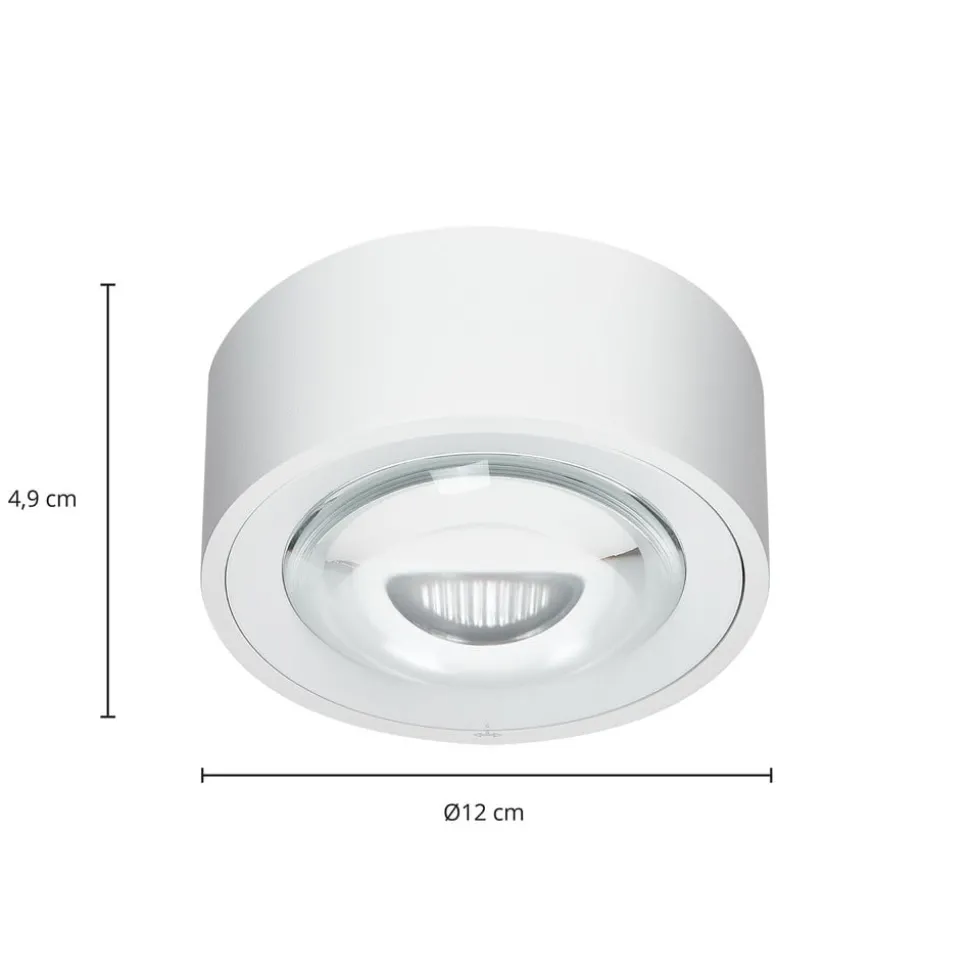 Ronde LED plafondlamp Rotari met lens, wit, dimbaar, CRI 90 Deze LED plafondlamp is een zeer eenvoudig verlichtingselement in een ronde vorm, maar het heeft een indrukwekkend lichteffect, omdat in plaats van een gewone kap of diffuser, hier een glazen lens is gebruikt om een duidelijk contour lichtaccent te geven. Het oppervlak van de Rotari LED plafondlamp is wit, waardoor hij zeer tijdloos en veelzijdig is. De CRI-waarde is bijzonder hoog, wat betekent dat het armatuur ook een bijzonder goede kleurweergave garandeert, en dankzij de LED technologie is ook een efficiënt verbruik gegarandeerd. De compacte plafondlamp kan indien nodig ook extern worden gedimd – een effectief verlichtingselement in een moderne stijl!