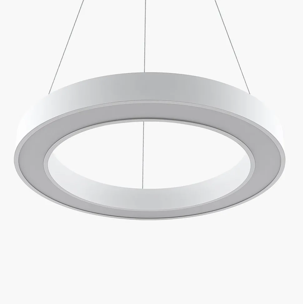 Ringvormige LED hanglamp Sharelyn in wit met Filigraan draadophanging, instelbare lichtkleur Sharelyn is een hanglamp met relatief Gross afmetingen en kan daarom ook goed worden gebruikt in een commerciële omgeving, vooral omdat de helderheid van de LED’s bijzonder hoog is en helder licht geeft dat scoort met een relatief laag energieverbruik. Die armatuur, die aan smalle draadkabels aan het Deck hangt, kan ook worden gebruikt als verlichting boven een tafel in een vergaderruimte, maar is natuurlijk ook geschikt als keukenverlichting om een tafel daar van goede helderheid te voorzien. Das design ziet er altijd Mod uit en de eenvoudige, ringvormige vorm in combinatie met de witte oppervlakteafwerking doet denken aan klassieke keukenlampen van vroeger, natuurlijk als een trendy herinterpretatie van de bekende Look. Vóór installatie kan de lichtkleur worden ingesteld met een DIP-schakelaar en afhankelijk van het doel kun je kiezen tussen warmwit of universeel wit licht.