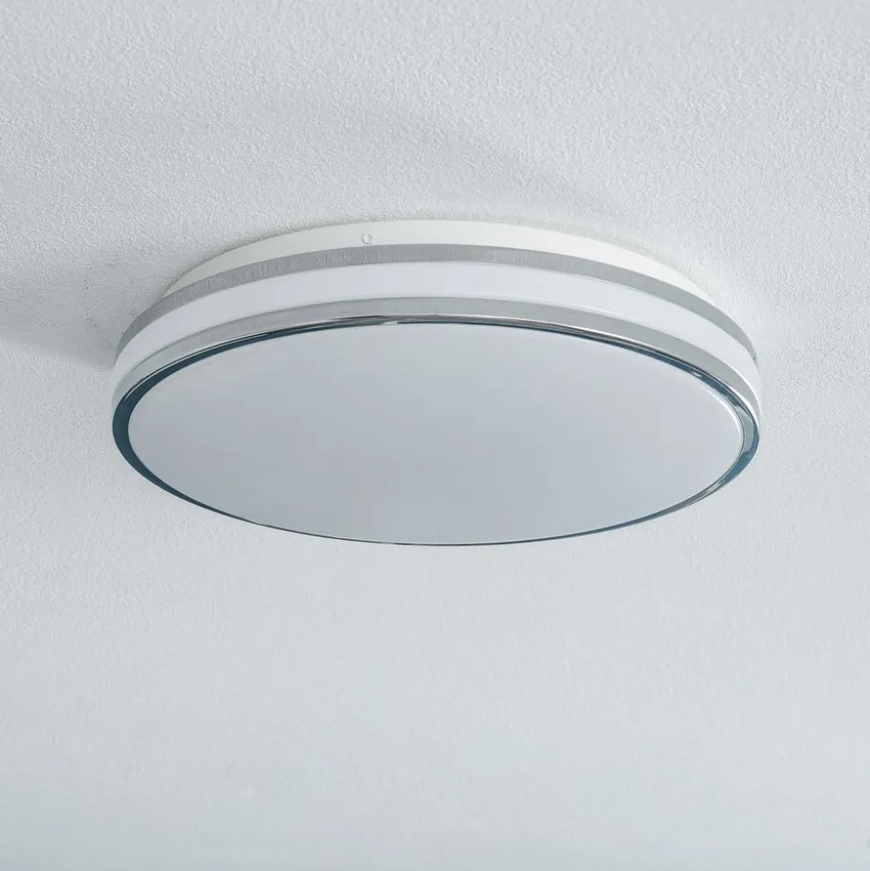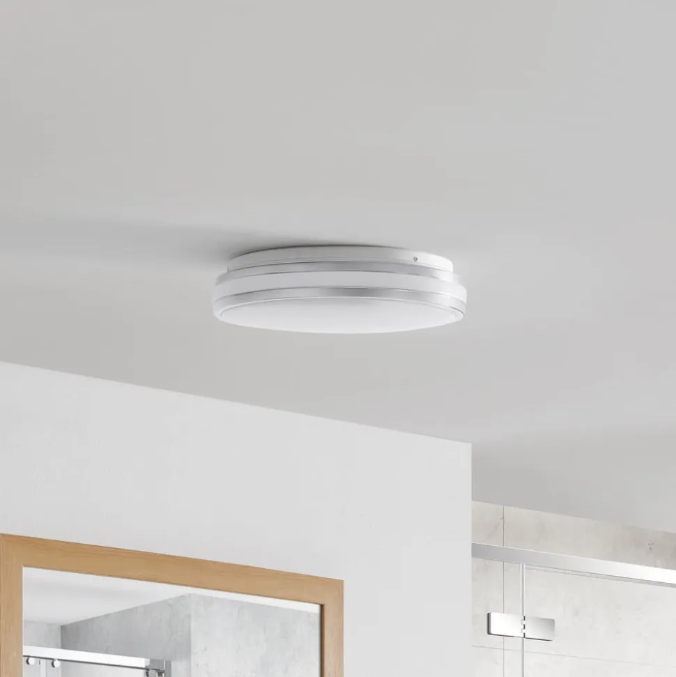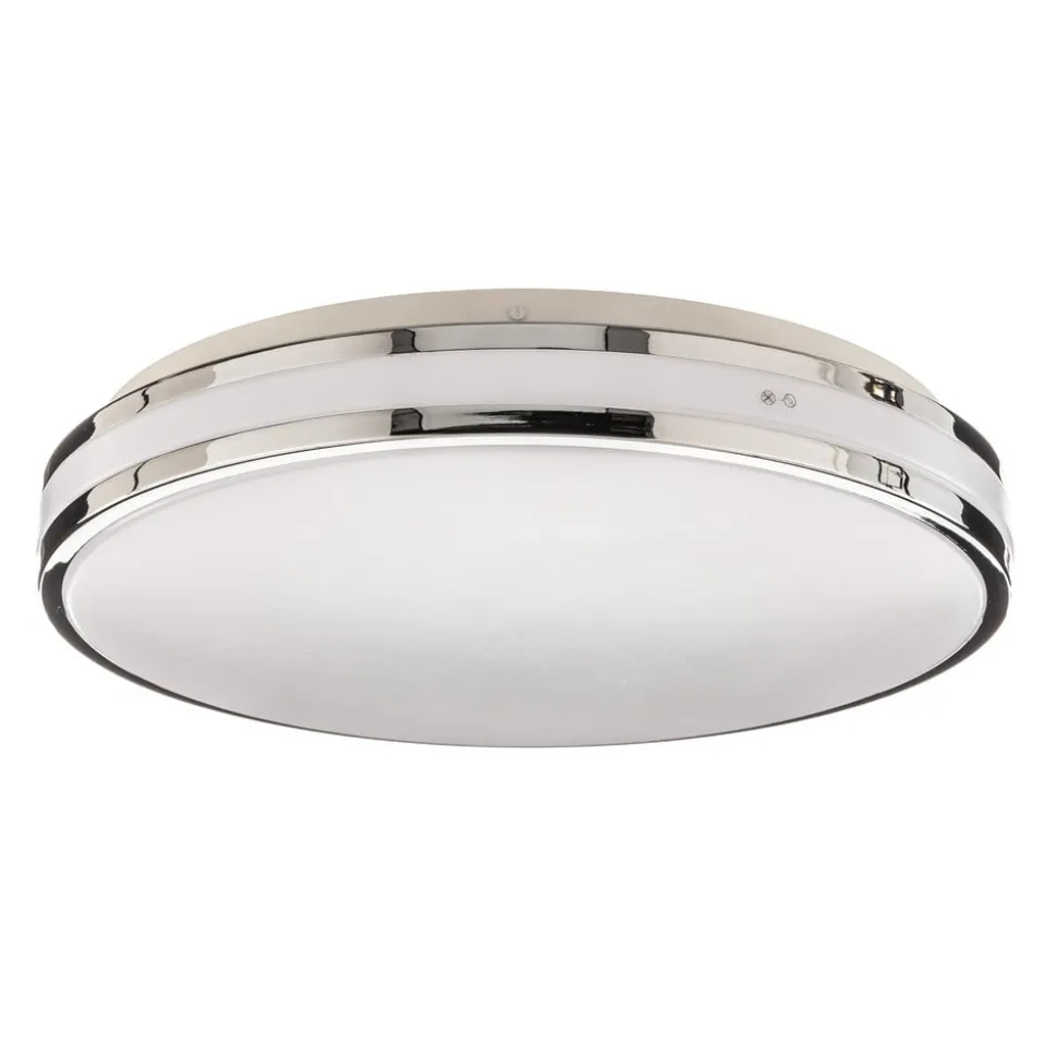 Ronde Sinovu LED plafondlamp met chromen details voor gebruik in badkamers