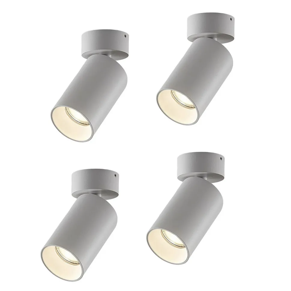 Witte Brinja spot van aluminium, set van 4 De witte Brinja spot maakt indruk met zijn eenvoudige maar elegante ontwerp en zet elke kamer in het juiste licht. In de gang, woon- of werkruimte – de lamp past zich aan vele situaties aan. De armatuur heeft een cilindrische aluminium kop die 90 graden kan worden gekanteld en 250 graden kan worden gedraaid. Dit betekent dat een specifiek deel van de ruimte naar wens kan worden verlicht. De ronde houder van de spot blijft onopvallend dankzij de slanke afmetingen. In deze aanbieding kan Brinja worden gekocht in een praktisch 4-pack.