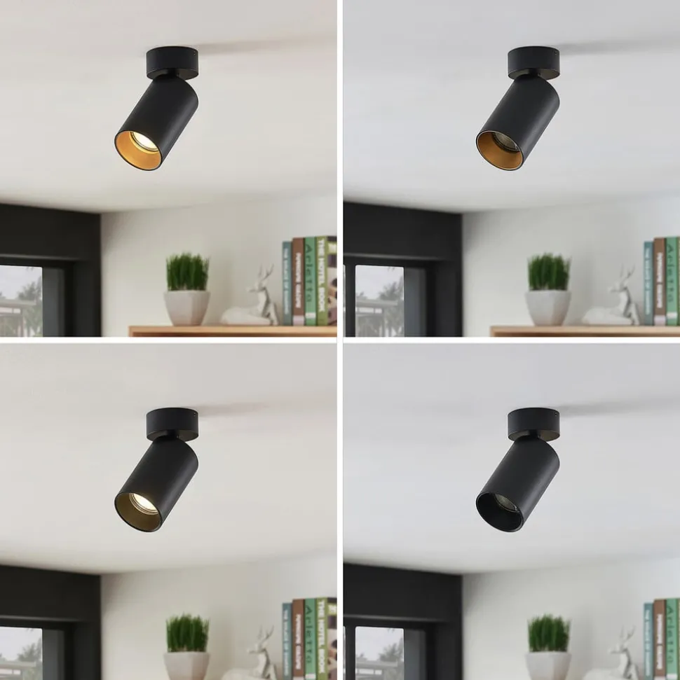 De 1-lamp spot Brinja brengt de lichtstemming op het punt. De strakke plafondlamp overtuigt door zijn flexibiliteit en harmonieuze design. Door de twee verschillende sierringen kan de binnenkant van de spot in zwart of goud worden bekleed.