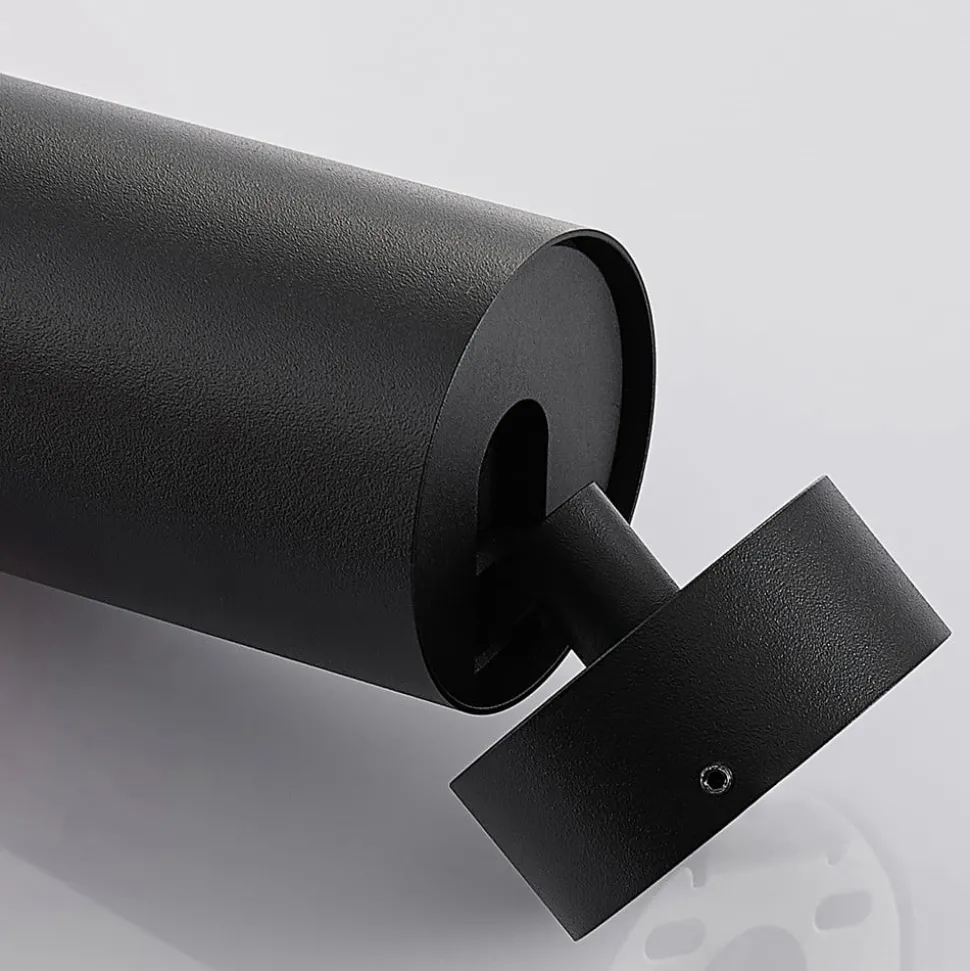 Zowel de kap als de ronde houder zijn qua afmetingen bescheiden en leggen in plaats daarvan de nadruk op een doelgerichte verlichting. De lamp kan flexibel worden gedraaid en gericht, zodat het licht altijd op de gewenste plek valt en past bij het overige lichtconcept. De glanzende zwarte kleur en het lichte aluminium ondersteunen de helderheid van deze aantrekkelijke lamp.