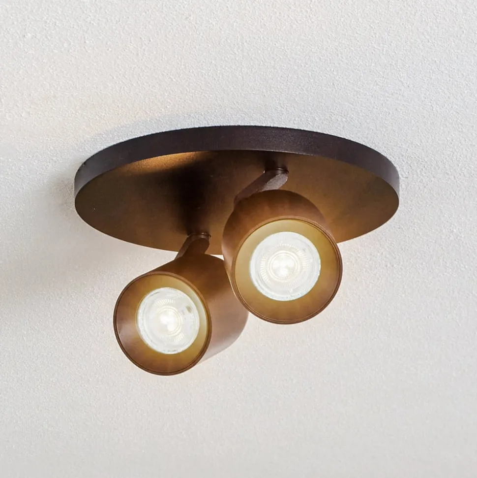 Zwarte, 2-lamps plafondspot Brinja met verstelbare kappen