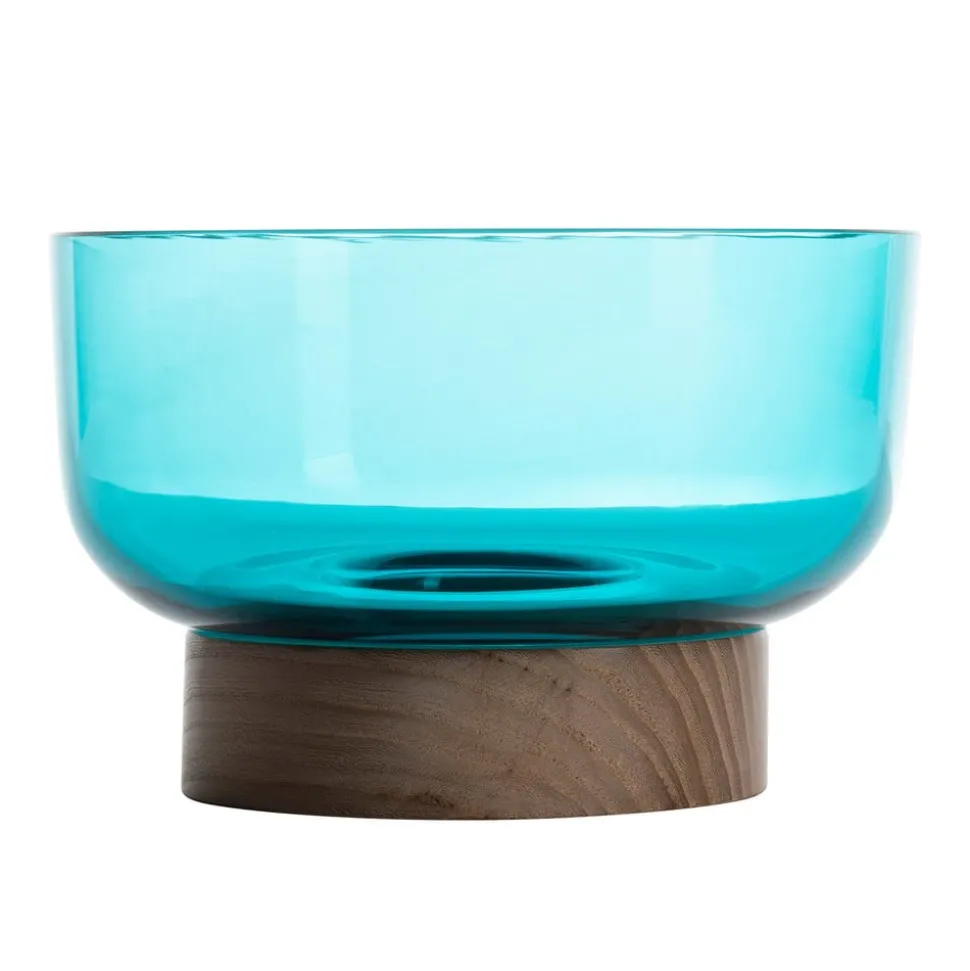 Artemide Bontà kom, turkoois, Ø 18 cm, glas, hout