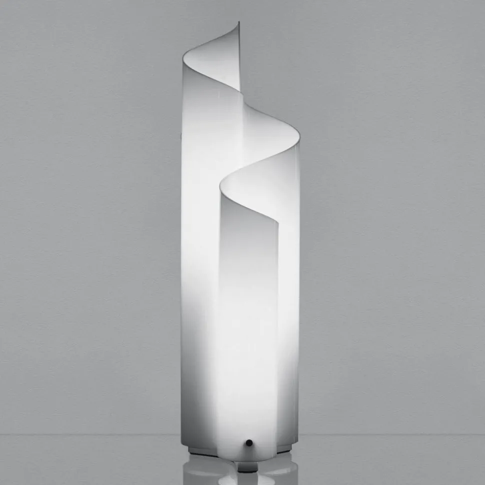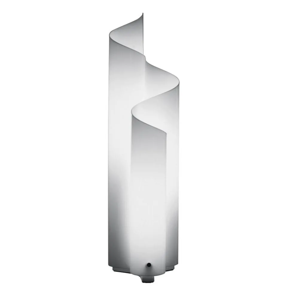 De vloer-, staande- en tafellamp Mezzachimera overtuigt door een zeer aangenaam lichteffect en is ook optisch een buitengewone verschijning. Het bestaat uit warmgevormd methacrylaat, dat de vorm aanneemt van een naar boven gerichte golf. Het licht van de lampen die tussen de spoelen zijn geplaatst, wordt verspreid en gefilterd in de omgeving, terwijl het lichaam zelf ook effectief in scène wordt gezet.