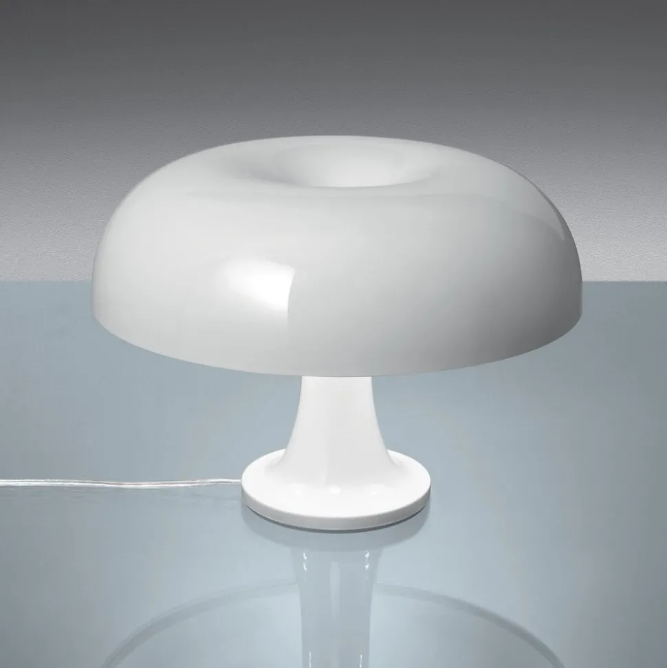 Oud design – nieuwe pracht: tafellamp Nessino van Artemide Deze tafellamp laat zien hoe tijdloos design kan zijn: het model Nessino is het kleine zusje van tafellamp Nesso. Nesso werd in de jaren 1960 ontwikkeld door de ontwerper Giancarlo Mattioli en de Gruppo Architetti Urbanisti Città Nuova. Die paddenstoelachtige Form en de plastic behuizing geven duidelijk aan dat hij in dit decennium is gemaakt. Toch is Nessino, de nieuwe editie van Nesso, vandaag de dag nog steeds een eigentijds en aantrekkelijk inrichtingsobject. Zowel de voet als de kap van Nessino zijn gemaakt van spuitgegoten polycarbonaat. Onder de kap zitten vier lampfittingen. De halfronde kap zorgt ervoor dat het licht niet-verblindend en indirect in de omgeving wordt verspreid. De Italiaanse ontwerper Giancarlo Mattioli (1933 – 2018) verwierf in de jaren 1950 en 1960 grote bekendheid met de tafellamp Nesso, die nu in diverse Dive musea te zien is, zoals het MOMA in New York.