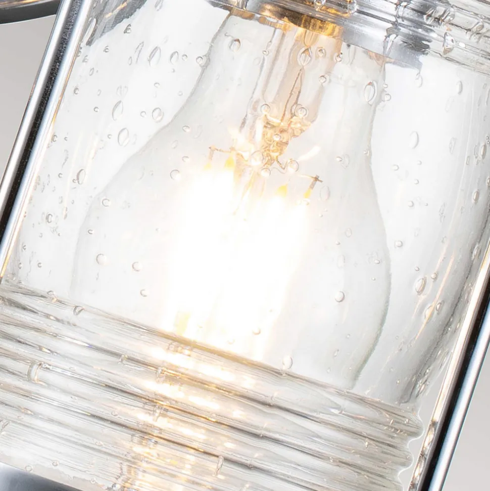 Wandlamp Ashland Bay 4-lamps met beschermingsgraad IP44 De wandlamp Ashland Bay met beschermingsgraad IP44 tegen spatwater is speciaal ontworpen voor gebruik in de badkamer. Gemaakt van een stalen frame en vier heldere glazen kappen met een gegroefd patroon aan de boven- en onderkant en een fijne zaadkorrelstructuur in het midden, zorgt de wandlamp voor perfecte verlichting voor de spiegel, zelfs in grote badkamers.