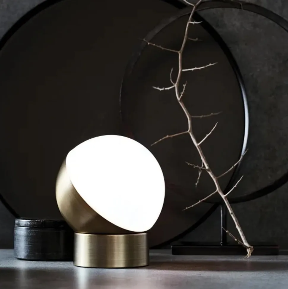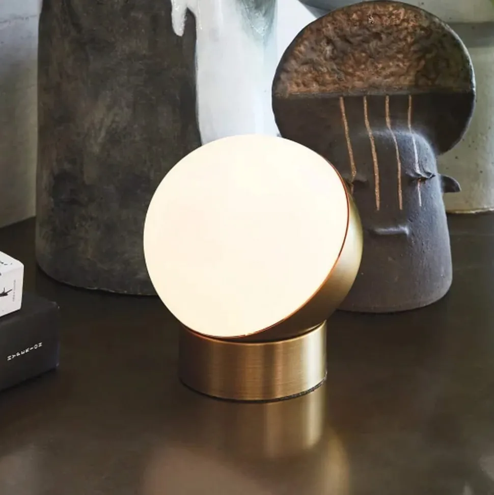 Beacon tafellamp Mikoh, antiek messingkleurig metaal, glas