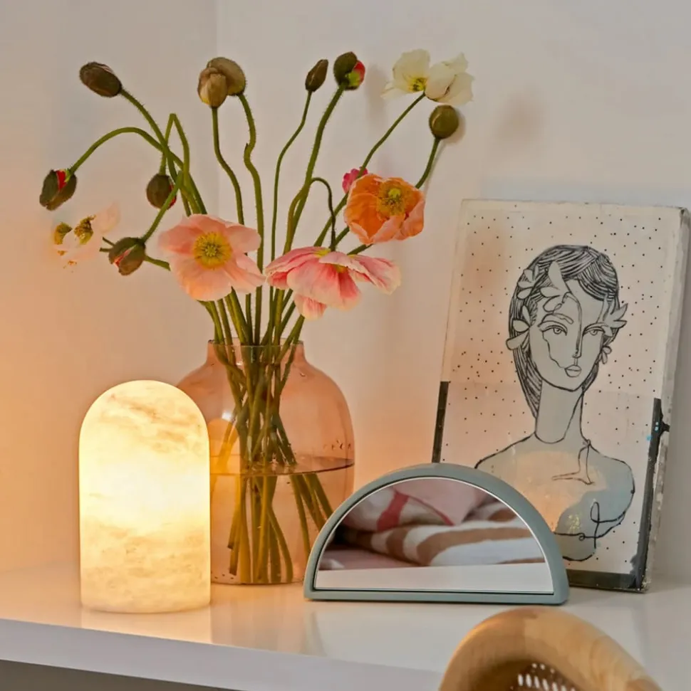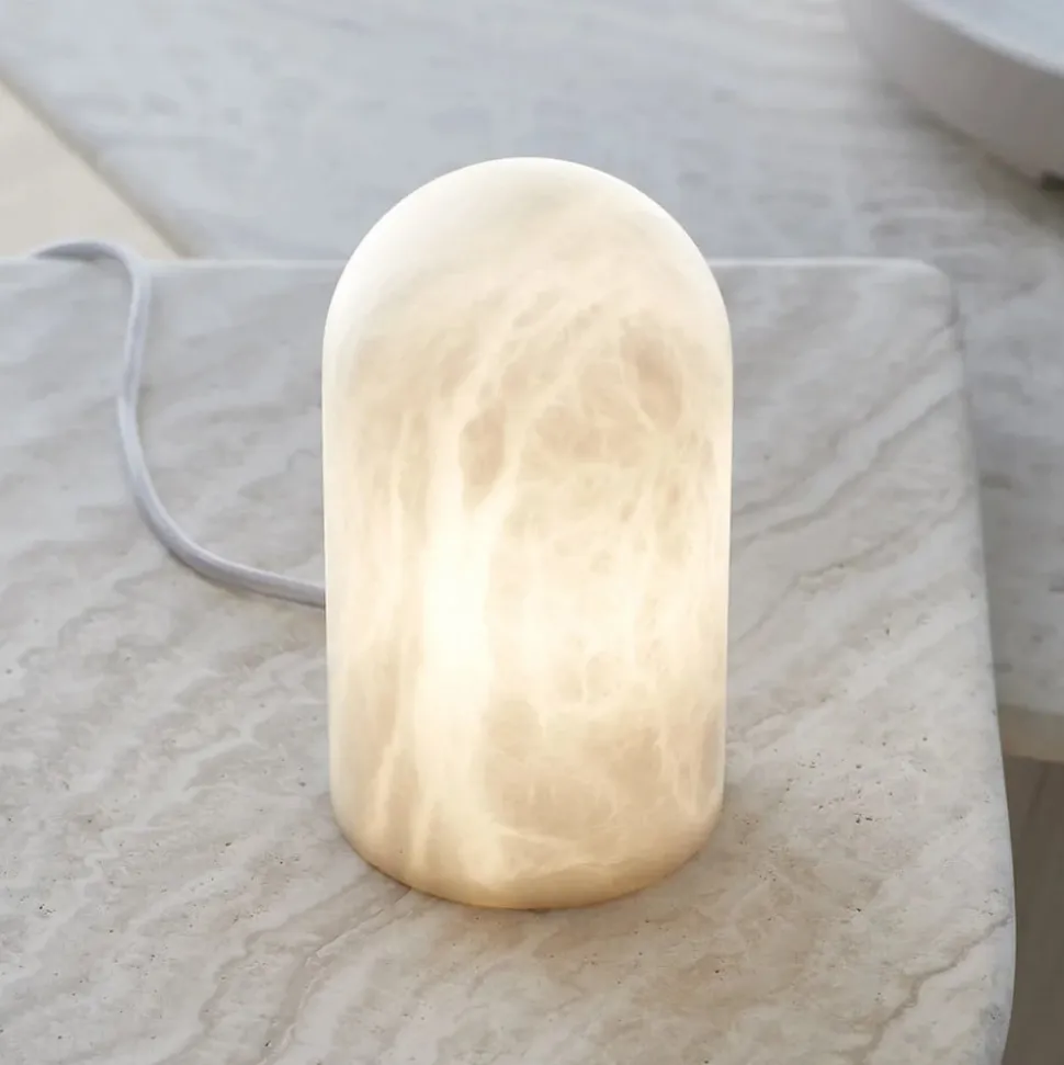Beacon tafellamp Panton, wit albast steen, hoogte 17,5 cm