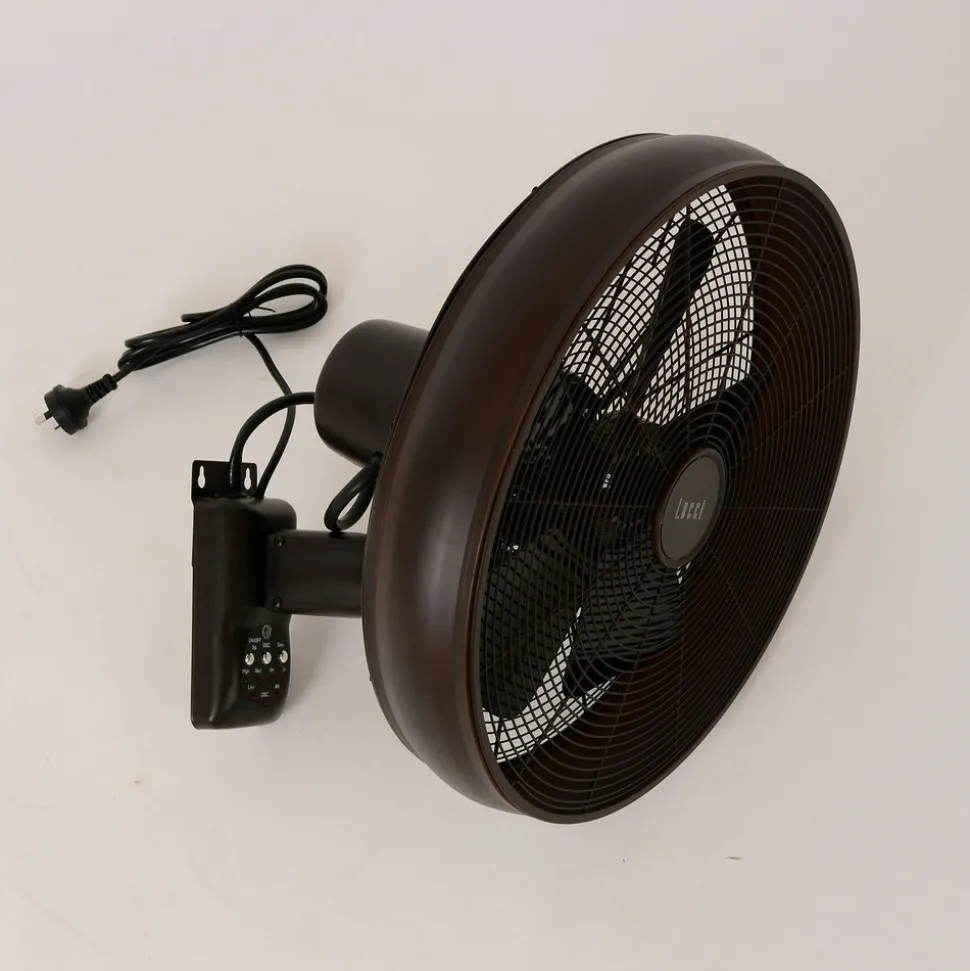 Dankzij een beweegbare verbinding met de muurbeugel kan het hoofd worden aangepast aan de omstandigheden in de ruimte. De snelheidsniveaus, de oscillatie en de timerfunctie kunnen worden geregeld via het bedieningspaneel op de muurbeugel of via de meegeleverde afstandsbediening (vereist 3 x AAA-batterijen – niet inbegrepen).