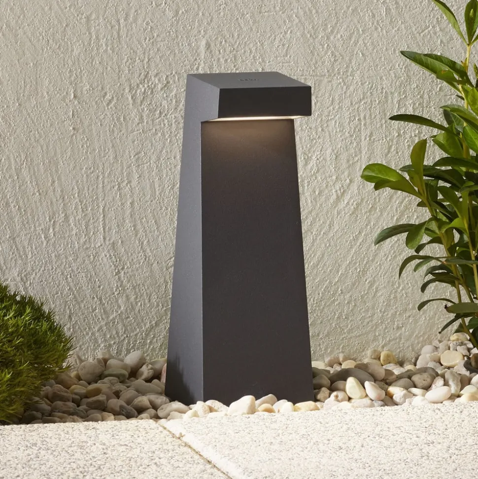 De 77276/84108 grafietgrijze LED sokkellamp van BEGA zorgt voor de verlichting van paden en ingangen dicht bij de grond. Het modern vormgegeven lichaam is gemaakt van aluminium en roestvrijstaal, de diffusor is gemaakt van veiligheidsglas. De armatuur is aan de bovenzijde afgeschermd, zodat het licht alleen naar beneden kan ontsnappen en zo een gelijkmatige en verblindingsvrije verlichting van wegen en terrassen wordt gegarandeerd. De bevestiging in de grond gebeurt met een grondstuk (incl.) van thermisch verzinkt staal.