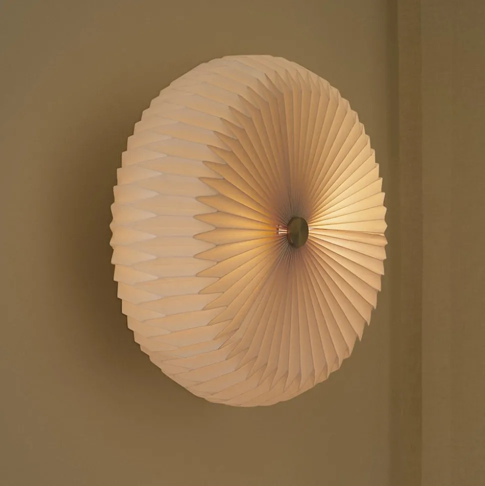 Belloy 40 plafondlamp met geplooide papieren kap De ronde Belloy 40 plafondlamp heeft een witte papieren kap met een geplooid ontwerp waardoor het een echte blikvanger is. De twee lampen binnenin (niet inbegrepen) spotten een zacht en diffuus licht in de kamer door het papier. De kap kan eenvoudig worden bevestigd met magneten en worden verwijderd om schoon te maken – kan ook worden gemonteerd als wandlamp