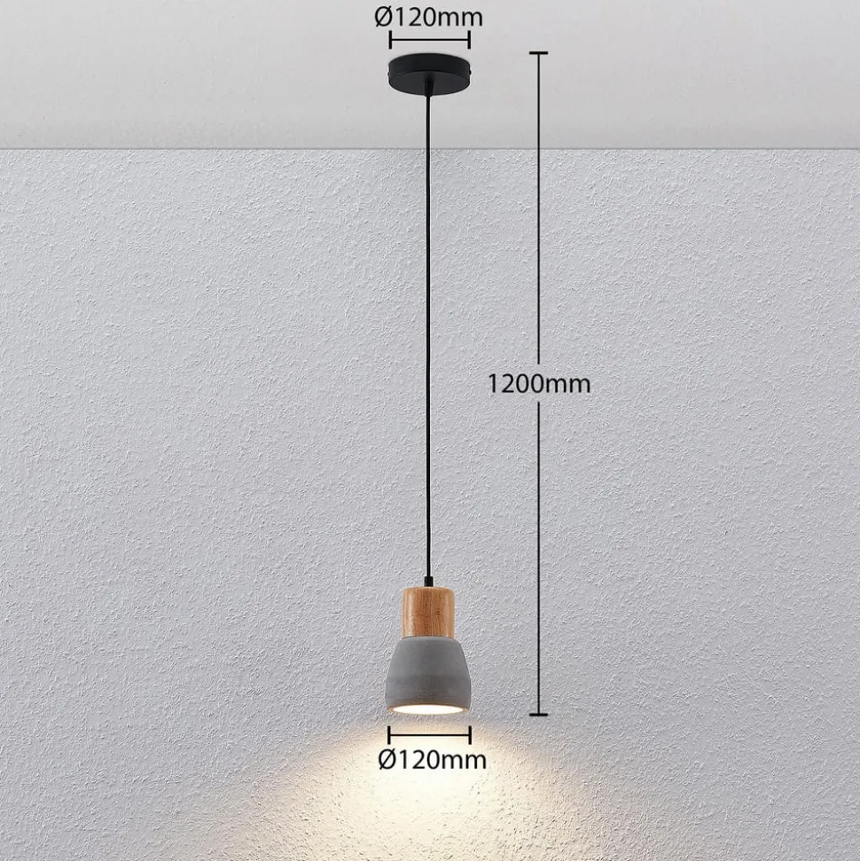 Deze hanglamp heeft compacte afmetingen en combineert industrieel ogend beton met de warme uitstraling van hout. Daarom kan de lamp worden geïntegreerd in industriële stijlen en worden gebruikt in combinatie met Scandinavische woonstijlen. De ideale oplossing is om hem boven een tafel of een aanrecht te plaatsen – met meerdere lampen achter elkaar – omdat het licht alleen naar beneden valt dankzij het ondoorzichtige beton.