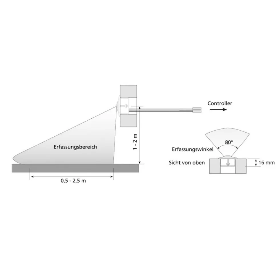 – Detectiehoek 80°, bereik 250 cm (bij 100 tot 200 cm montagehoogte)