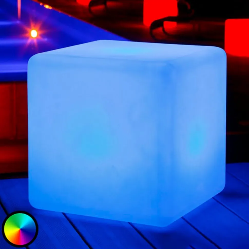 Big Cube – LED lichtbron, kruk of tafel voor buiten De Big Cube verlichte kubus wordt aangedreven door een Akku zodat hij overal geplaatst kan worden, of er nu een stopcontact is of niet. De verwijderbare lichtunit maakt het heel gemakkelijk om de lege Akku op te laden door de lichtunit op het meegeleverde Ladestation te plaatsen, waar Die binnen maximaal 8 uur weer volledig is opgeladen. Big Cube is gemaakt van weerbestendig, UV-bestendig plastic en is volledig waterdicht. 20 RGB LED’s en 15 witte LED’s in de kubus maken een grote verscheidenheid aan verlichtingsscenario’s mogelijk – naast wit licht en 6 gekleurde lichtkleuren kan een geel of blauw kaarseffect en een kleurverandering van meer dan 160.000 kleuren worden geselecteerd met behulp van de schakelaars die in de voet van de lichtunit zijn geïntegreerd. Als de gratis Smart & Green App (beschikbaar voor Apple en Android) is gedownload, kan het licht ook worden bediend via een smartphone of Tablet. Met dit type bediening zijn de mogelijkheden voor verlichtingsontwerp bijna eindeloos. Naast meer dan 160.000 kleuren, wit licht en talloze verlichtingsscenario’s, kan de helderheid worden aangepast en kan de lichttemperatuur van het witte licht worden ingesteld in een bereik van 2.700 K tot 6.500 K.