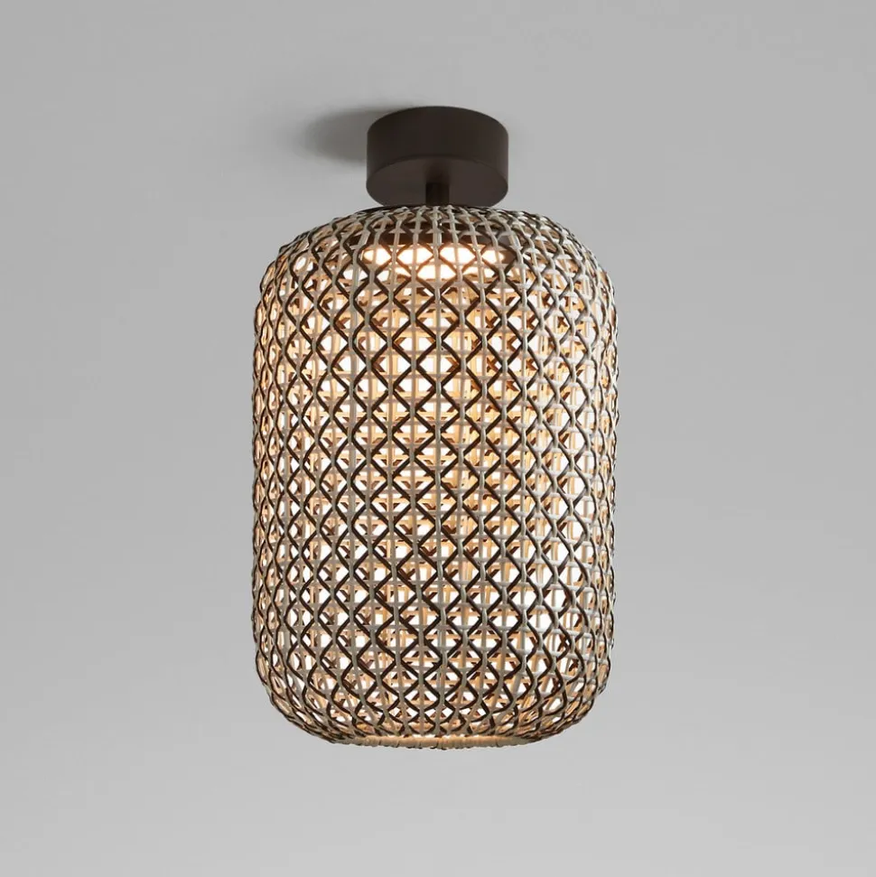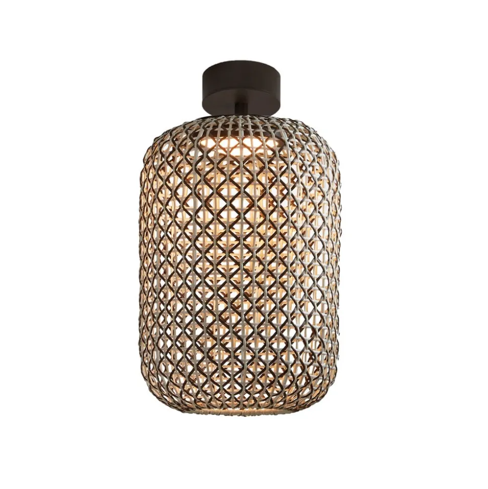 LED plafondlamp Nans voor buitenDe armaturen van de serie Nans zijn ontworpen door Joana Bover, de oprichter van het gelijknamige bedrijf uit Barcelona. Met haar ontwerpen wil de ontwerpster de lichtheid van de mediterrane levensstijl overbrengen. De plafondlamp Nans heeft een kap die gemaakt is van een rieten stof, die bestaat uit synthetische vezels. De beschermingsklasse IP54 beschermt de lamp tegen vocht en stof, zodat deze zonder problemen buiten gebruikt kan worden, bijvoorbeeld in paviljoens, op het terras of het balkon.