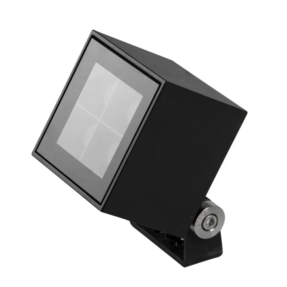Blokk zwenkbare LED buitenspot voor opbouw Deze LED spot zet sculpturen, gevels en andere buitenelementen vakkundig in scène. De vierkante kop van zwart aluminium en met een glazen afdekking is draaibaar gemonteerd op de montagesokkel zodat de lichtuitstraling kan worden gericht volgens de hoogte van het te verlichten oppervlak. Blokk kan op het betreffende oppervlak worden vastgeschroefd. De buitenspot heeft een weerbestendig en robuust ontwerp – Stralingshoek: 36° – Zwenkhoek: 90° – Beschermgraad: IP65 – Slagvastheid: IK07 – Inclusief voorschakelapparaat