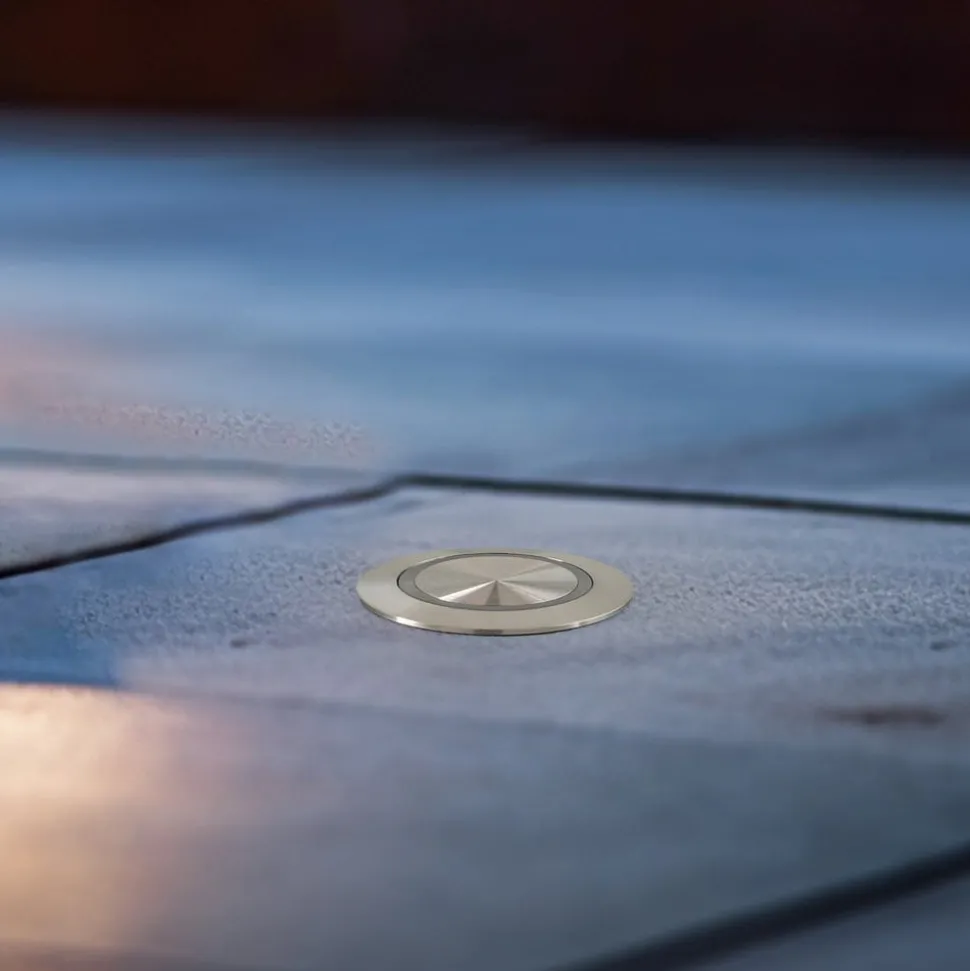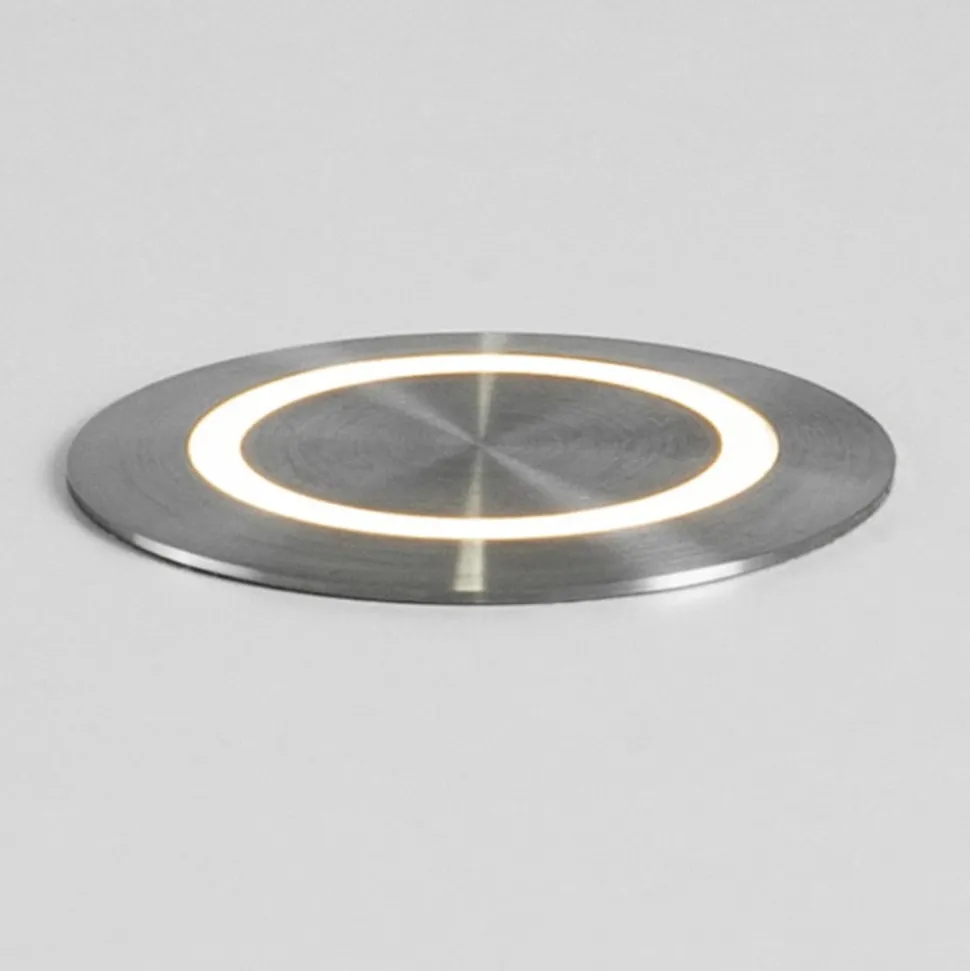 De LED-vloerinbouwarmatuur Hybride Mini is hier verkrijgbaar in een versie met filigrane, ringvormige lichtuitstraling. De opaalwitte ringvormige diffusor is verzonken in de ronde behuizing van V4A roestvrij staal. Ook deze is gemaakt van speciaal, resistent chroomnikkelstaal van roestvrije kwaliteit, alsmede van aluminium.