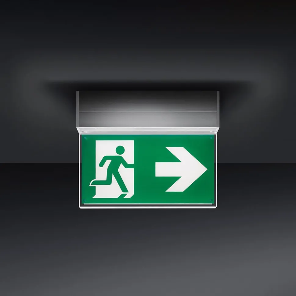 Rescue Two LED vluchtwegarmatuur met zelftest, detectiebereik 25 m Verplicht in openbare gebouwen en levensreddend in geval van nood: de Rescue Two LED vluchtwegarmatuur. Met een detectiebereik van 25 meter wijst hij ook op grote afstand betrouwbaar de weg naar de nooduitgang. Met een noodlichtfactor van 100% kan hij dit 3 uur lang zonder stroom. Hij gaat echter 8 uur lang mee als de factor wordt teruggebracht tot 40% (bijvoorbeeld bij gebruik in accommodaties). De Rescue Two LED-noodverlichting heeft een lange levensduur en opslagcapaciteit dankzij een speciale oplaadbare lithium-ijzerfosfaataccu. De behuizing is gemaakt van stevig polycarbonaat – Technisch ontwerp in overeenstemming met EN 60598.2.22 – Automatische zelftest (test-LED van buitenaf zichtbaar) – Etikettering aan één of beide zijden mogelijk – Nominale bedrijfstijd 3 uur (kan worden omgeschakeld naar 8 uur bij 40% noodlichtfactor) – Inclusief LiFePO4-accu en pictogrammenset