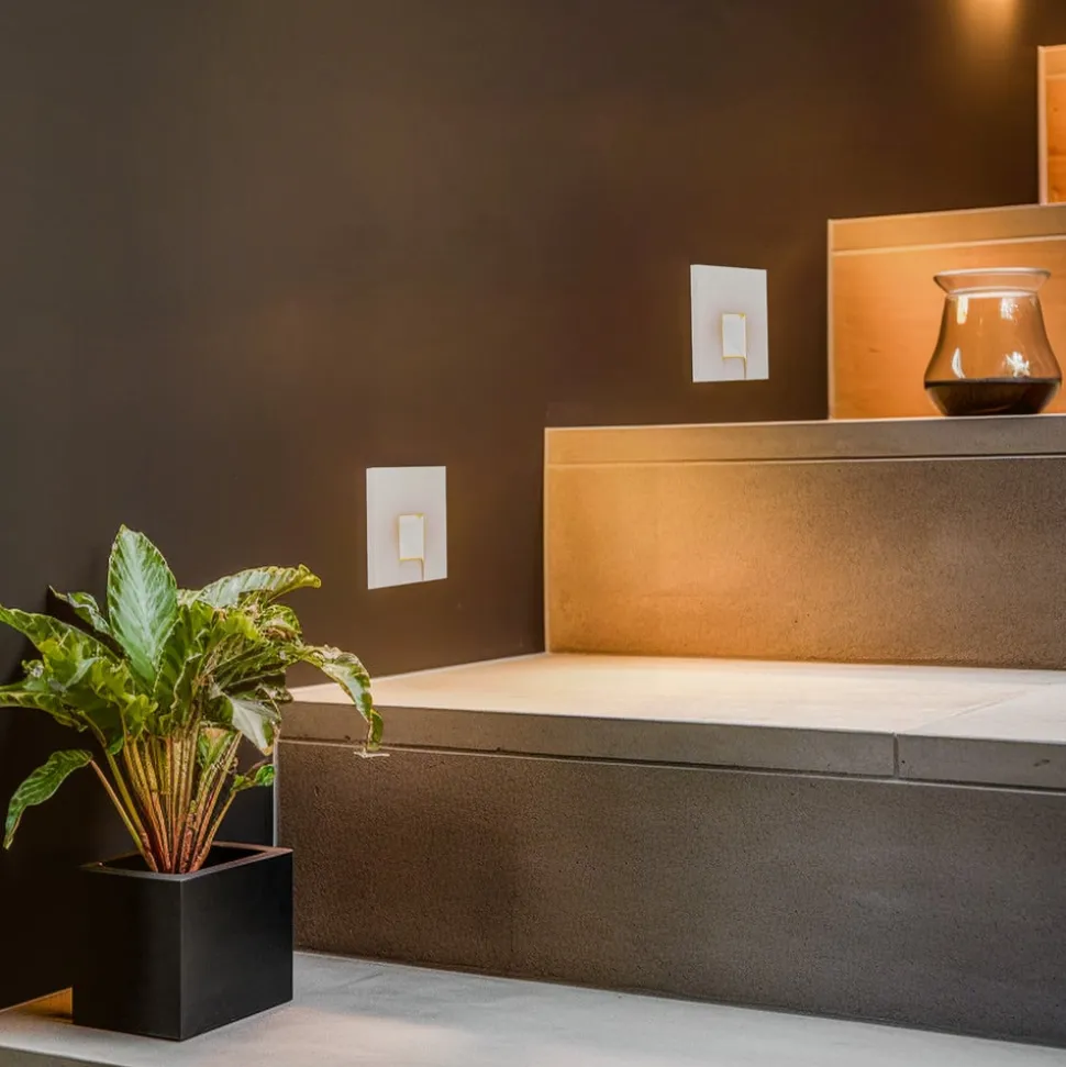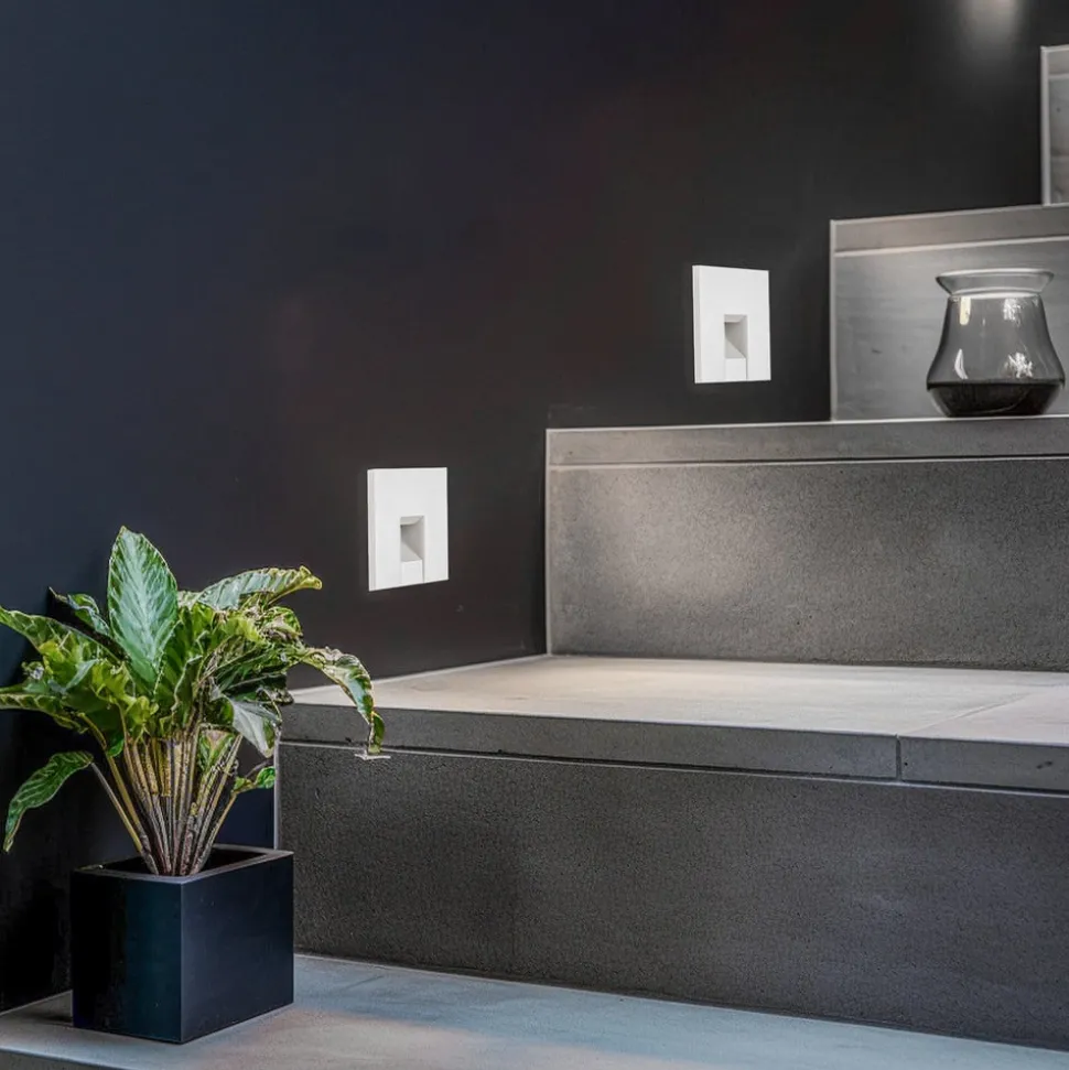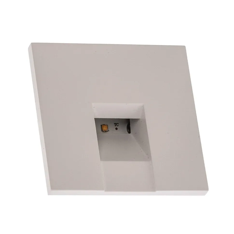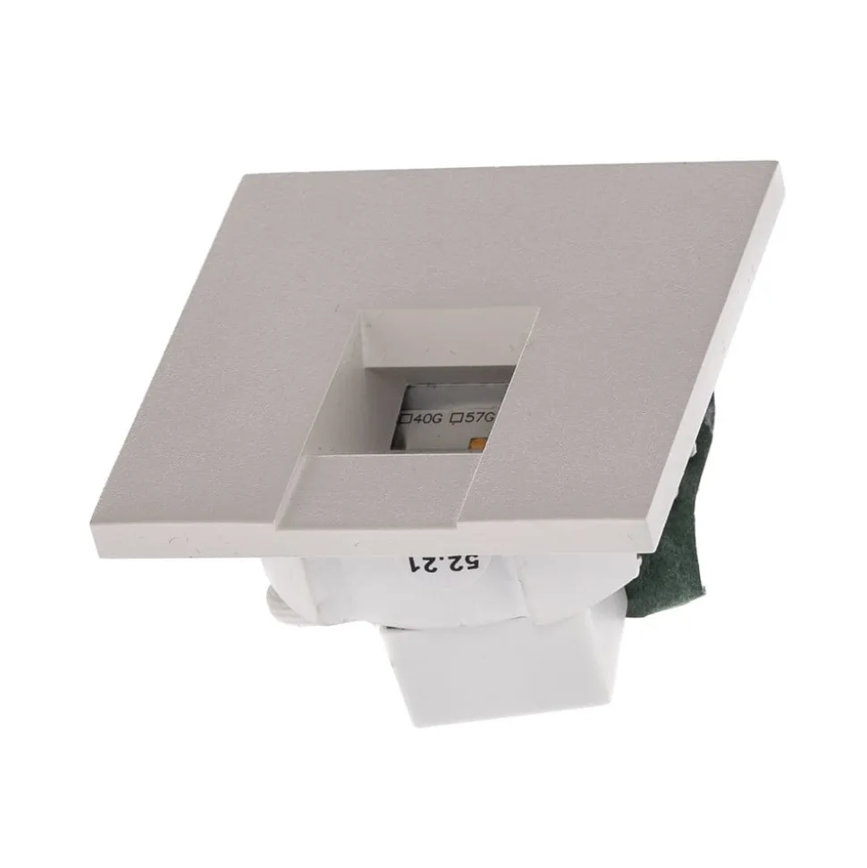 Wall Kit68 inbouwlamp voor inbouwdozen – vierkant en met LED’s Deze inbouwlamp heeft een eenvoudig vierkant ontwerp en is gemaakt van aluminium. Wall Kit68 heeft een lichtopening waarin de LED’s licht verzonken in de armatuur zijn geplaatst. Deze zorgen voor een warmwit oriëntatielicht dat vooral welkom is in trappenhuizen en gangen. Wall Kit68 wordt geïnstalleerd in inbouwdozen, waar het wordt aangesloten op de 230 V uitgang – Minimumafmetingen van inbouwdoos: Ø 6,8 cm, diepte 6,5 cm – Inclusief voorschakelapparaat – Geleverd zonder inbouwdoos