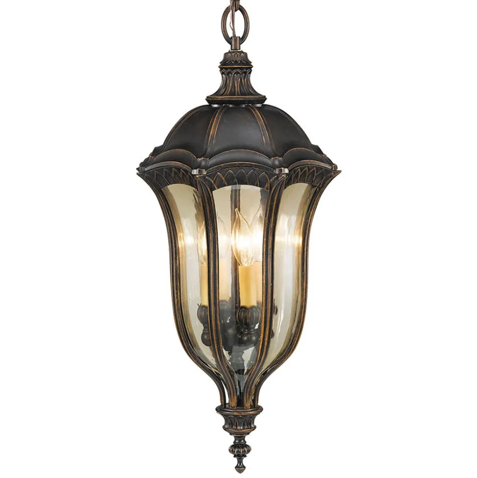 Buitenpendelamp BATON ROUGE lijkt op een traditionele straatlantaarn. Het robuuste aluminium spuitgietwerk in walnootkleurige tinten wordt aangevuld door het goudkleurige glas van de lampenkap. Pendellamp BATON ROUGE is een kwaliteitsproduct voor veilige en esthetische verlichting buitenshuis. Deze lamp wordt geleverd inclusief ketting en plafondkap. Zij kan als plafondlamp of als pendellamp worden gemonteerd.