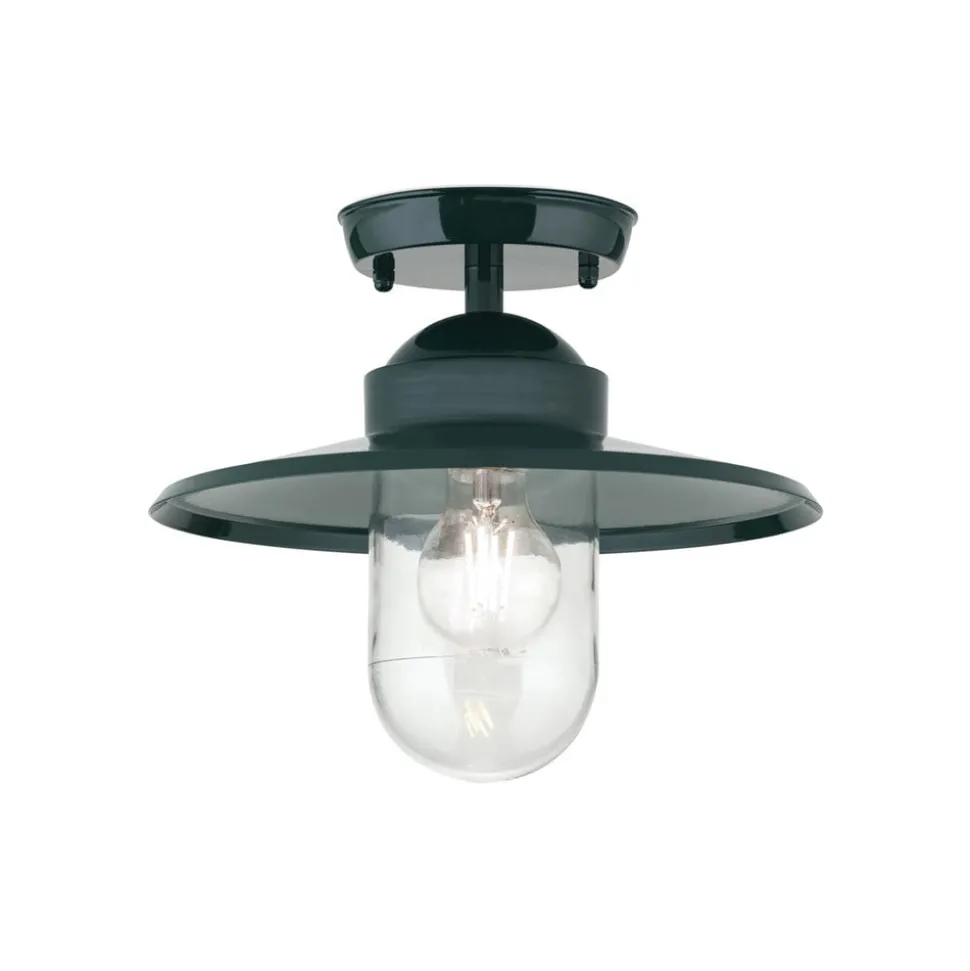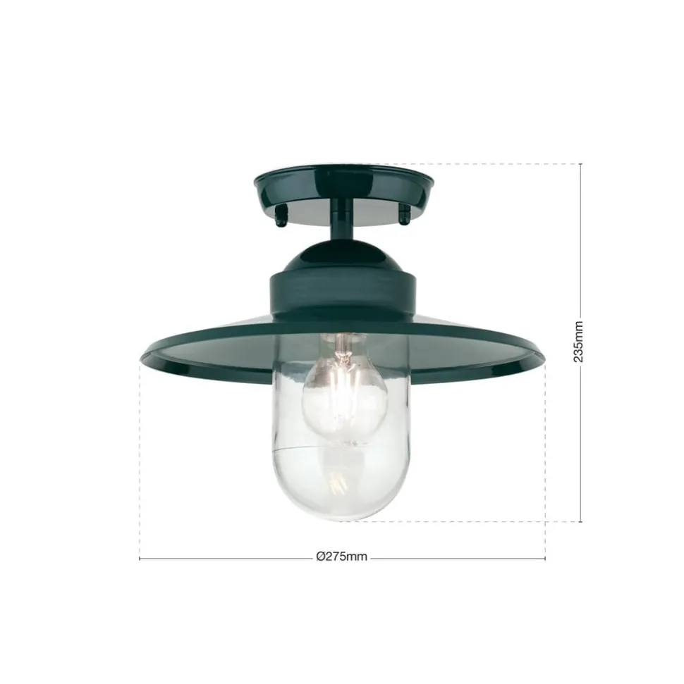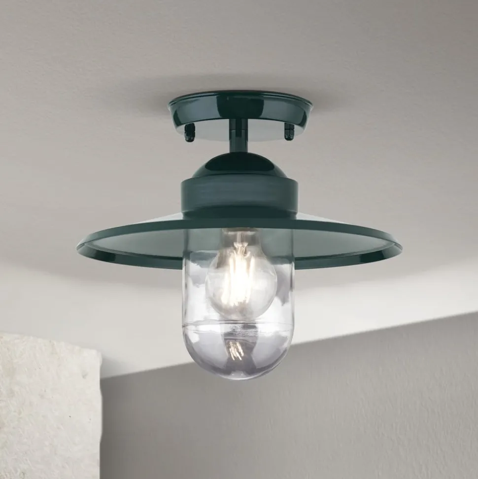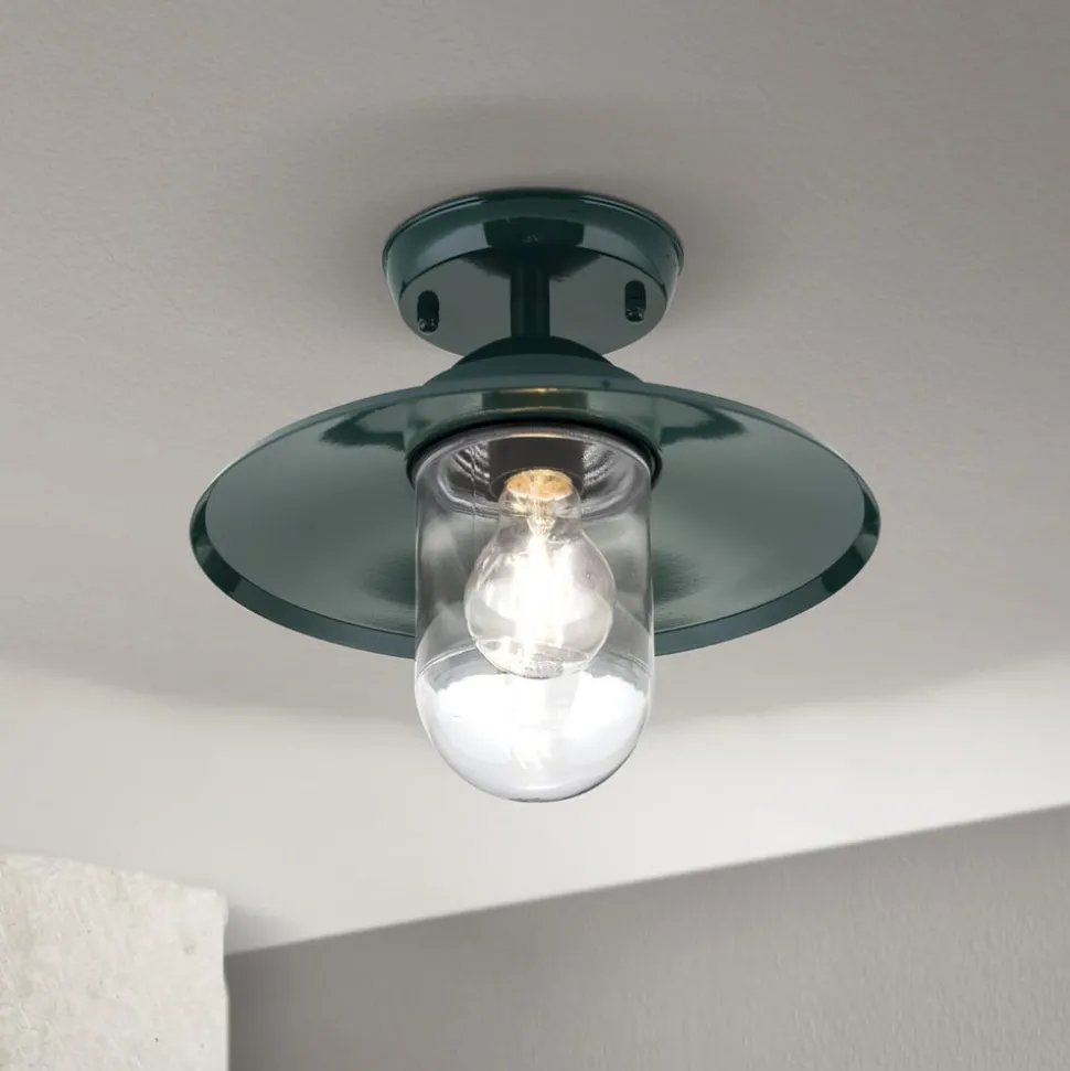 Buiten plafondlamp Edward, groen, Ø 27,5 cm, aluminium/glas