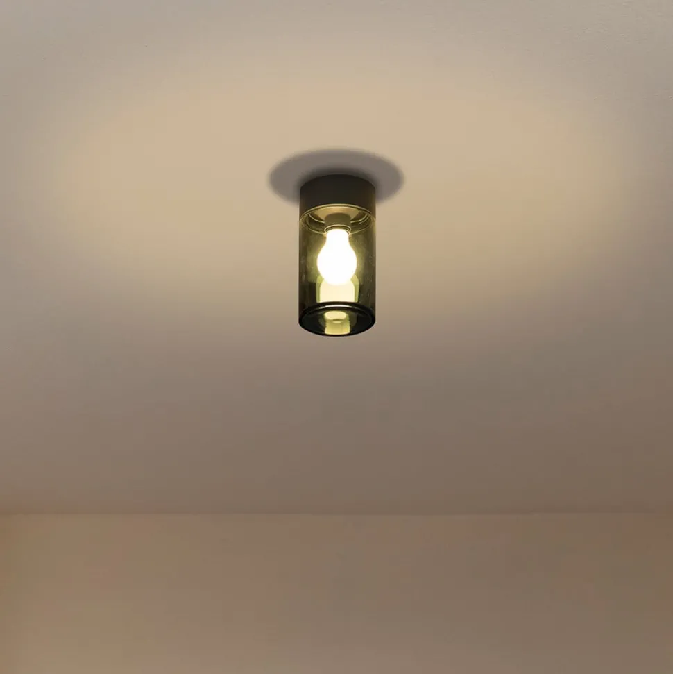 De voet van de Kila buitenplafondlamp is gemaakt van antracietkleurig aluminium. De cilindervormige kap van glas, waarin een E27 fitting wacht op een efficiënte LED lamp van maximaal 15 watt, is naadloos aangesloten.