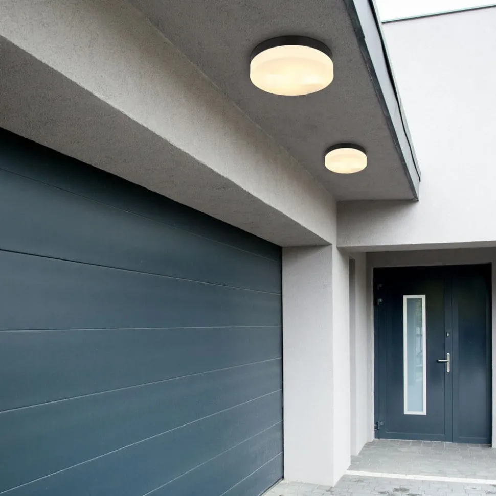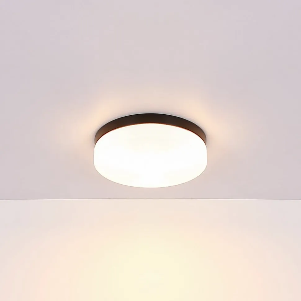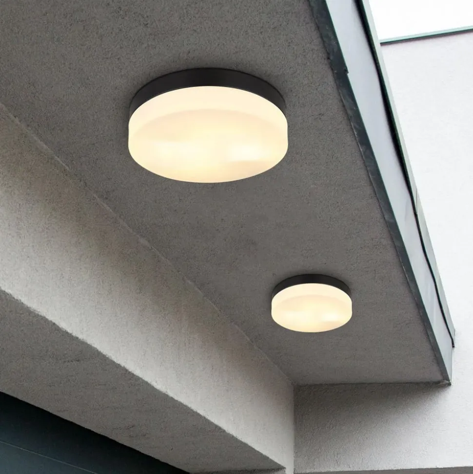 Buiten plafondlamp Vranos, mat zwart, Ø 24 cm, aluminium