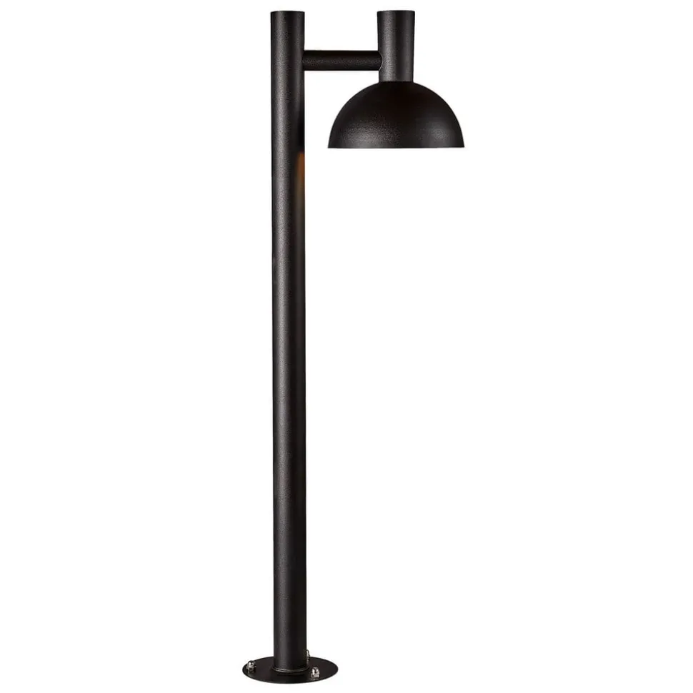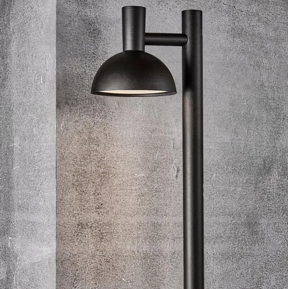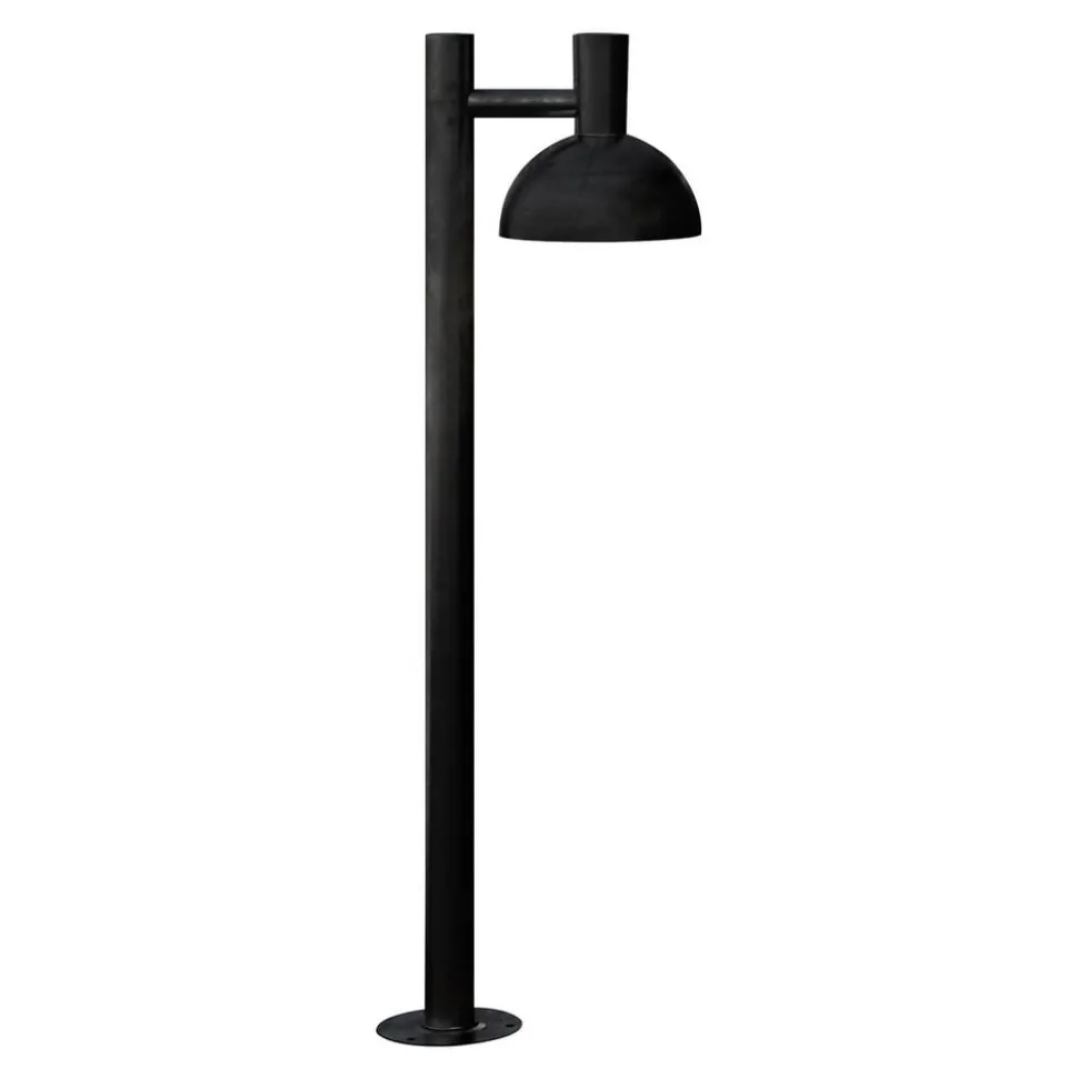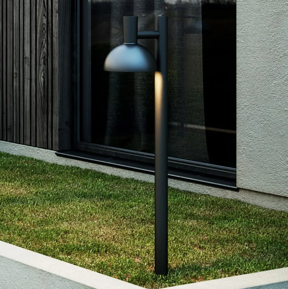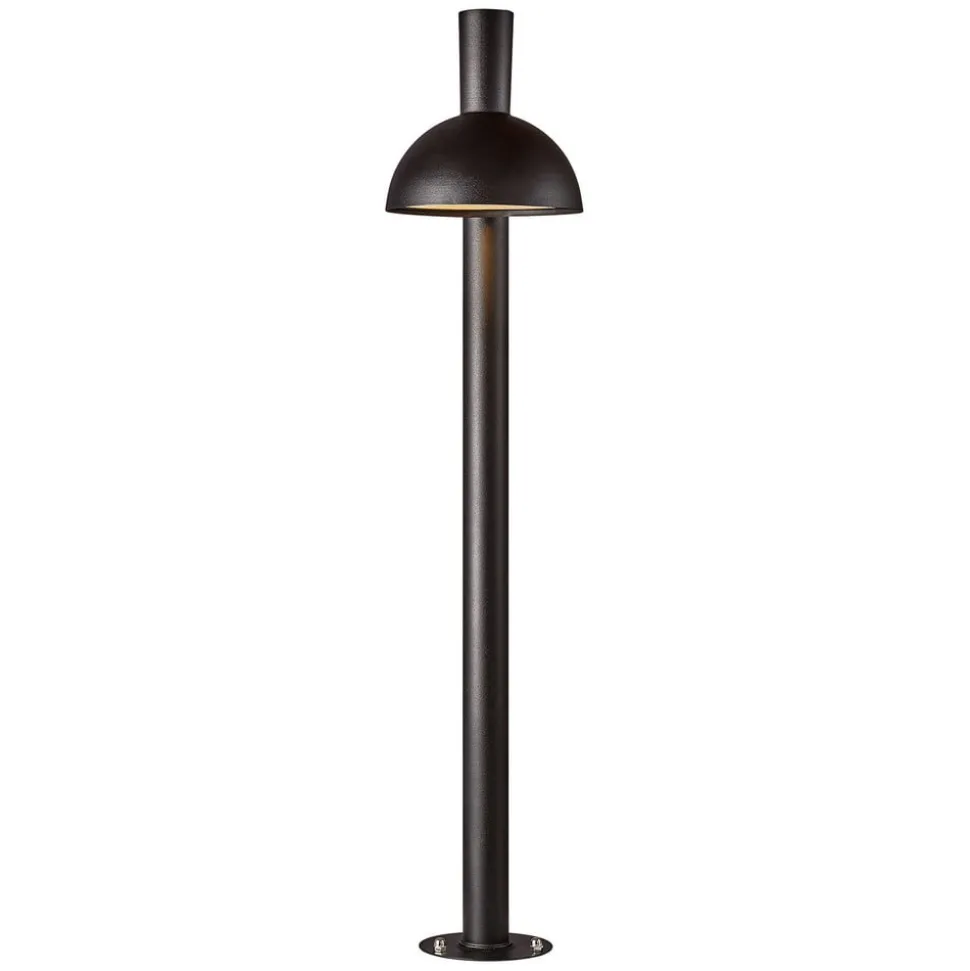 Een robuuste stang met voet houdt de naar beneden gerichte lampenkap van de paalarmatuur Arki 100 vast. Deze richt het licht op het tuinpad en zorgt zo voor nuttig, niet-verblindend oriëntatielicht voor opritten of terrassen. De lichtbron, die rechtstreeks als accessoire kan worden besteld, wordt beschermd door een kunststof diffusor. Het ontwerp is van de Deense kunstenaar Bønnelycke MDD.