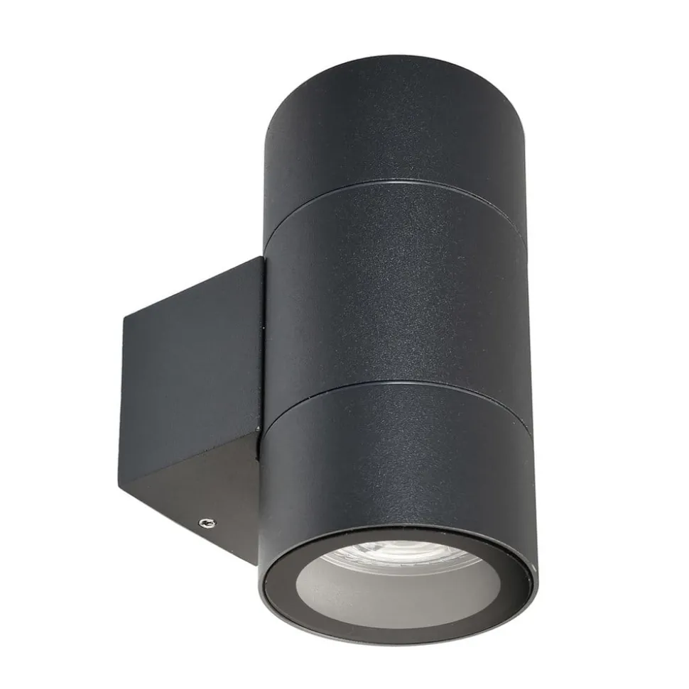Tweelamps buitenwandarmatuur Achernar – up/downMet een tijdloos mooie uitstraling in zwart-grijs is de wandarmatuur Achernar met IP65-bescherming tegen het binnendringen van waterstralen en stof zowel voor de verlichting van interieurs als voor buitenruimtes en objectverlichting aan te bevelen. Carport, entree van het huis of een gang in het huis – Achernar combineert functie en sfeer met licht dat naar boven en beneden schijnt. Voorzien van GU10-contactdozen voor retrofitlampen met bijpassende voet – Gemaakt van robuust spuitgietaluminium
