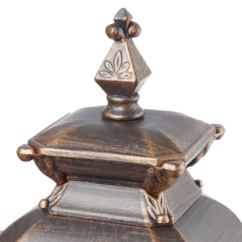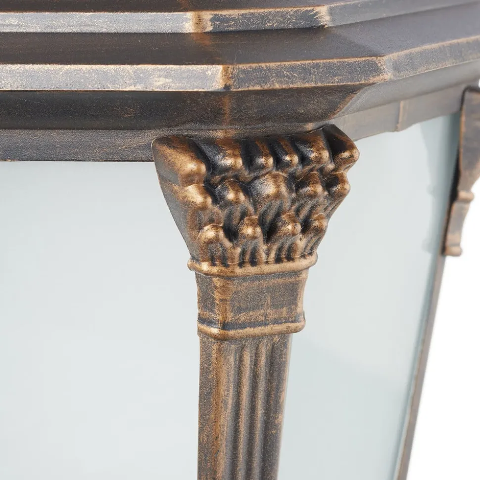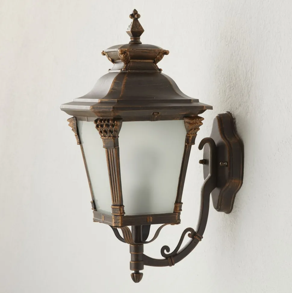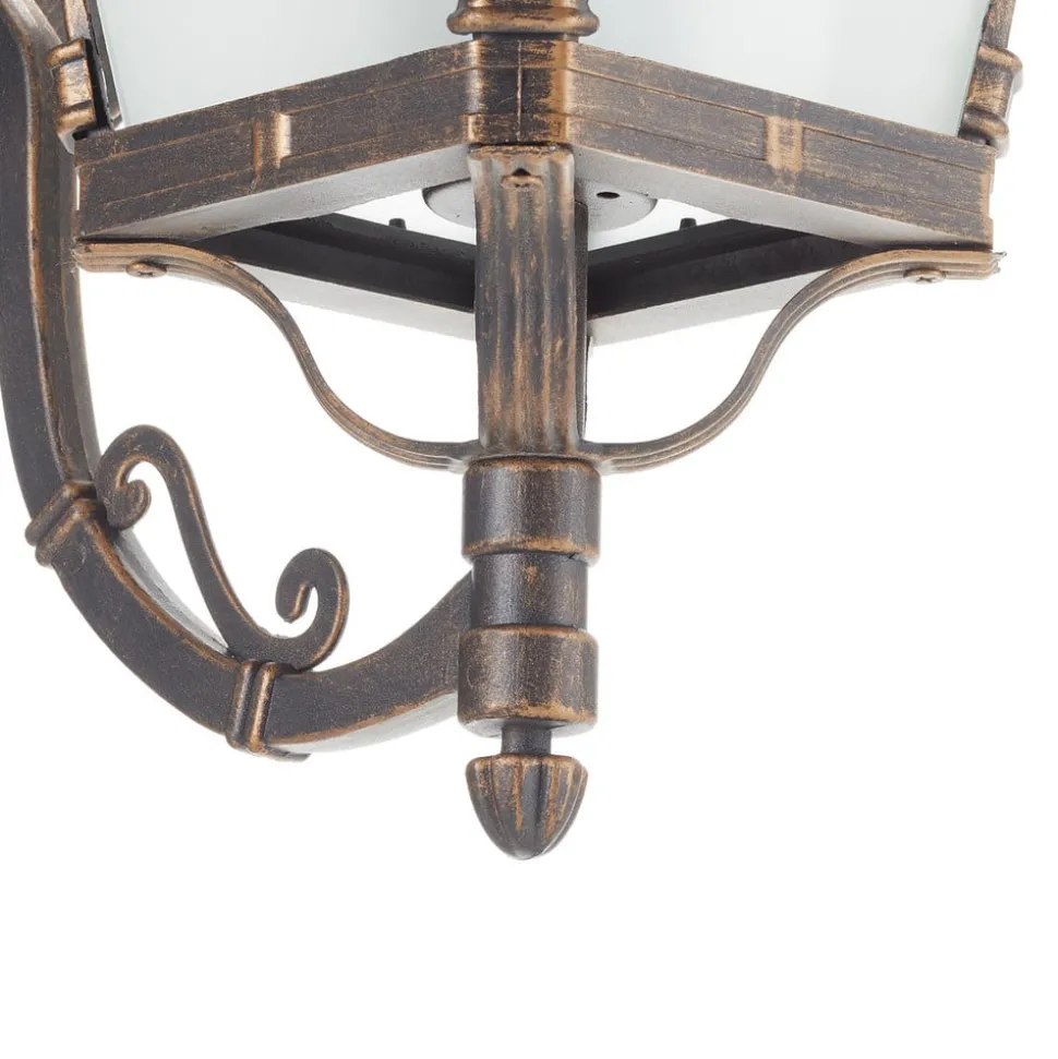 Buitenwandlamp Aiko – lantaarnlook met gedetailleerde buitenkant De buitenwandlamp Aiko maakt indruk met authenticiteit en nostalgische gevoelens voor de kijker. De antieke look van dit armatuur zet aan tot dromerige gedachten aan vroeger of een mooie fantasiewereld. De matglazen ruiten zorgen ervoor dat het licht niet verblindt en een zeer aangenaam en warm effect heeft. De buitenvorm van dit armatuur is gebaseerd op het uiterlijk van een lantaarn.
