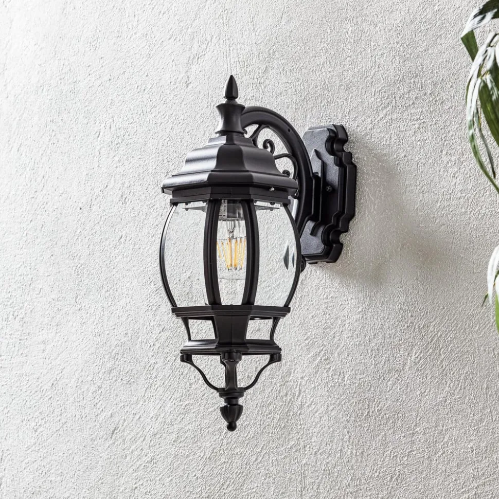 Deze smaakvol vervaardigde buitenwandlamp heeft een decoratief vervaardigde metalen behuizing die overal gemakkelijk kan worden geïntegreerd. Het ovale en transparante glas wordt bovendien door verschillende stijlen op een stabiliserende manier omlijst en zorgt voor een passende verlichting.