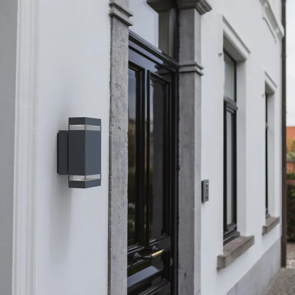 De kubus wordt aan de boven- en onderzijde onderbroken door twee lichtspleten en heeft ook een doorzichtige diffuser aan de boven- en onderzijde. Hierdoor kan de wand mooi naar boven en beneden worden verlicht en de uitsparingen aan de zijkant zorgen ook voor een goede oriëntatieverlichting. De edele vorm en het design komen uitstekend tot hun recht tegen lichte of gestructureerde buitenmuren.