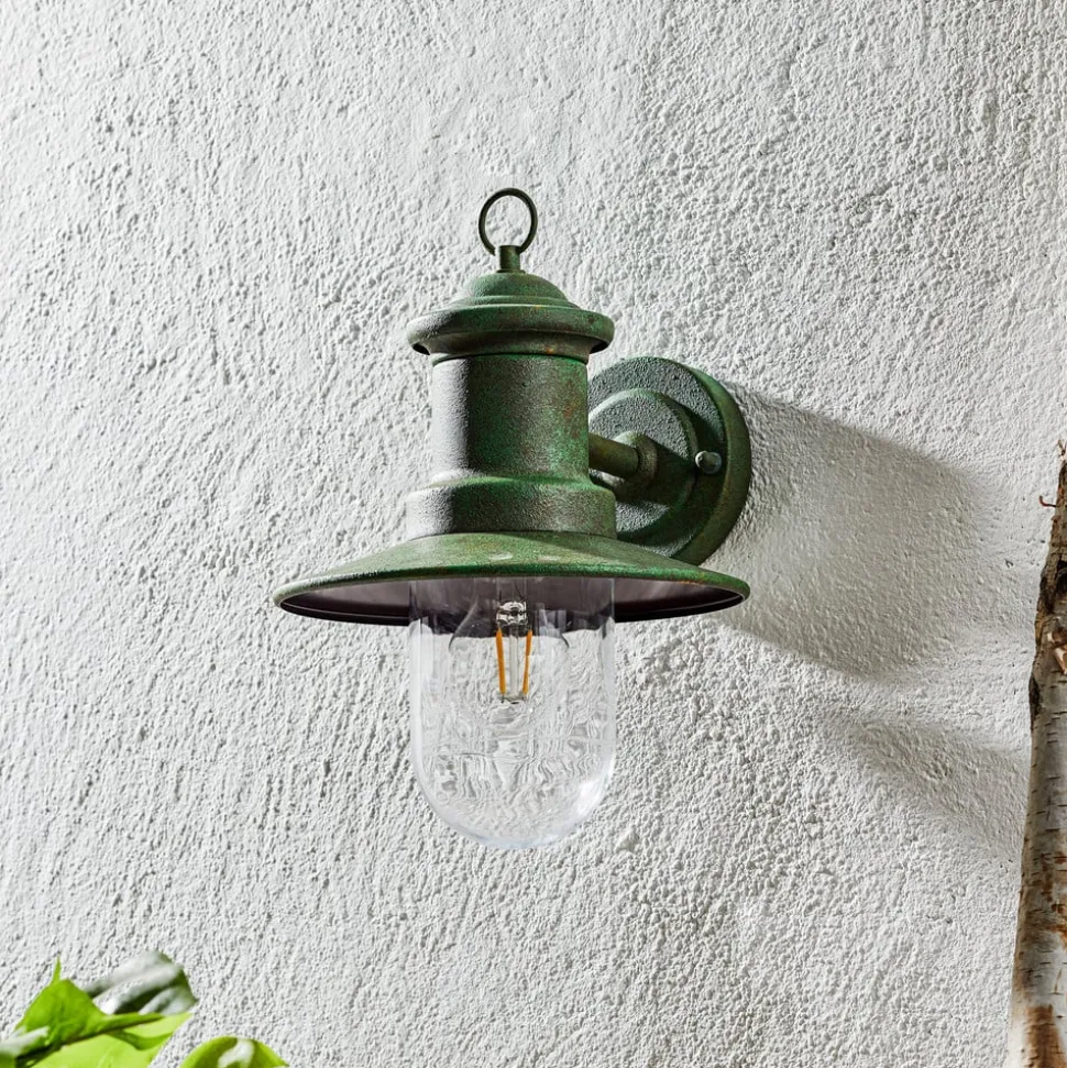 Groene buitenwandlamp Leonie met rustieke uitstraling