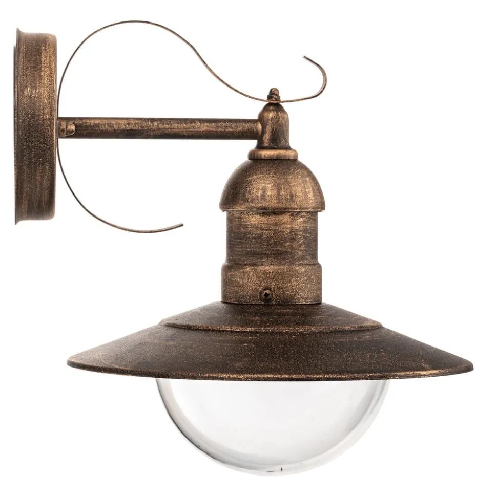 Het ontwerp van de Linda buitenmuurlamp doet denken aan lampen die op oude schepen zijn gevonden. Dit maakt het armatuur een perfecte match met de landhuisstijl of een maritiem interieur. Dankzij zijn IP44-classificatie is hij geschikt voor gebruik buiten, waar hij ingangen verlicht of als decoratieve lichtbron op een terras dient. De fraai gevormde lampenkap heeft een vintage patina gekregen, wat het de rustieke uitstraling geeft en het armatuur dat bepaalde iets geeft. Het ontwerp wordt afgerond met een transparante bol van kunststof, die zich op de lampenkap bevindt. Hierdoor kan het licht naar beneden ontsnappen, wat zorgt voor een gelijkmatige verlichting.