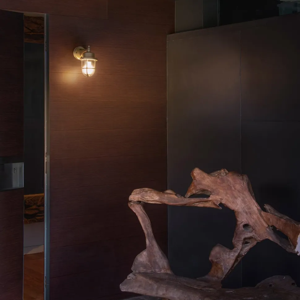 Het lamphuis van de Nahir wandlamp voor buiten is gemaakt van messing en is beschermd tegen corrosie. Daarom kan zij ook worden gemonteerd op de gevels van huizen in de buurt van de kust, aangezien de invloed van zoute lucht haar niet schaadt. Het glas van de lamp is omgeven door een beschermend rooster en is voorzien van een gloeilamp met een E27 fitting. Geschikte lampen kunnen via de accessoires worden besteld.