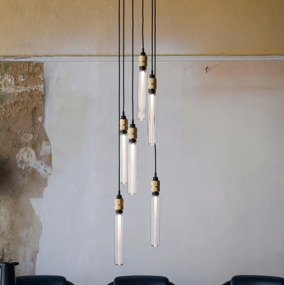 Naakte hanglamp Hooked 6.0 met zes fittingen en variabele ophangingen