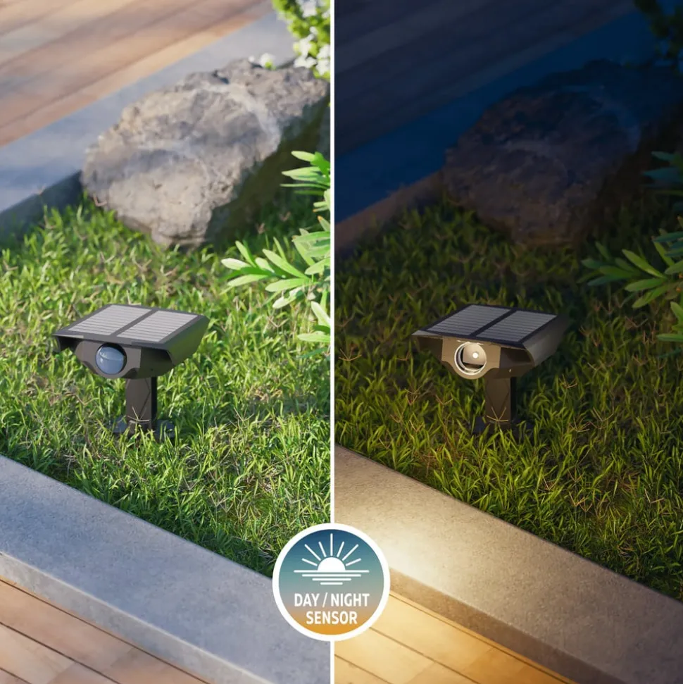 De LED-tuinspots Padoa werken op 100% zonne-energie en laden overdag op via de geïntegreerde zonnepanelen om ’s avonds sfeervolle verlichting te bieden – geheel zonder stroomkosten. Ze zijn ideaal voor het verlichten van paden, bloembedden of voor het accentueren van bomen en gevels. De spots hebben een verstelbare lichtstraal, waarmee de lichtrichting flexibel kan worden ingesteld om gericht de gewenste zones te verlichten. Met de meegeleverde 19 cm lange grondpennen kunnen de lampen moeiteloos in de grond worden bevestigd. De installatie is snel klaar – voor directe, duurzame buitenverlichting.
