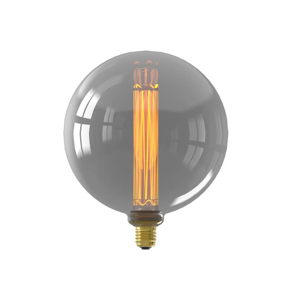 Dimbare LED lamp XXL Royal Kalmar Filament met rookgrijze tint, 3,5 W, 2.000 K Elegante gloeidraden vormen het hart van de Royal Kalmar LED lamp, De Royal serie is een verzameling elegante, grote lampen die elke ruimte een luxe uitstraling geven. De lampen in XXL-formaat hebben een statige, rechte gloeidraad die prachtig licht geeft en perfect past bij een chic interieur. Met een bijzonder warme lichtkleur creëert deze elegante lamp een zeer aangename sfeer. De rookgrijze coating zorgt ervoor dat deze moderne E27 lamp in vrijwel elk interieur past. Kalmar is een opvallend hoogtepunt dat het middelpunt van een kamer kan zijn en een gevoel van grandeur en verfijning uitstraalt. Met de Royal Kalmar of een van de andere lampen uit de Royal serie van Calex geef je je interieur gegarandeerd een bijzonder luxe uitstraling. – dimbaar
