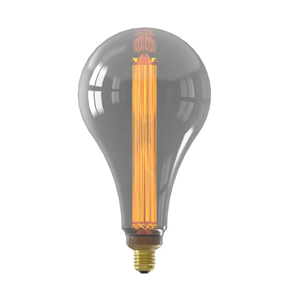 Dimbare LED lamp XXL Royal Osby Filament met rookgrijze tint, 3,5 W, 2.000 K Elegante filamenten vormen het hart van de Royal Osby LED lamp. De Royal serie is een verzameling elegante, grote lampen die een luxueuze uitstraling geven aan elke kamer. De lampen in XXL formaat hebben een statige, rechte gloeidraad die prachtig licht geeft en perfect past bij een chique interieur. Met een bijzonder warme lichtkleur creëert deze elegante lamp een zeer aangename sfeer. De rookgrijze coating zorgt ervoor dat deze moderne E27 lamp in vrijwel elk interieur past. Osby is een opvallend hoogtepunt dat het middelpunt van een kamer kan zijn en een gevoel van grandeur en verfijning uitstraalt. Met de Royal Osby of een van de andere lampen uit de Royal serie van Calex geef je je interieur gegarandeerd een bijzonder luxe uitstraling. – dimbaar