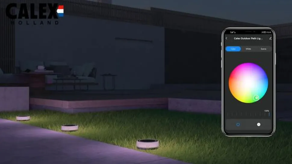 Praktische set van 3 sokkellampen incl. grondspikes: LED buiten sfeerlamp Smart Outdoor Ground Spot, RGB, CCT, bedienbaar via app De 3-lamps LED sierlamp Smart Outdoor Ground Spot voor buiten kan op grondniveau worden gemonteerd of worden gebruikt als grondspies lamp. Zowel statiefvoeten als grondspikes worden meegeleverd. Hierdoor is het ideaal voor gebruik als driedelige tuinpadverlichting in de tuin. Deze moderne buitenlamp wordt via een stekker van stroom voorzien. Voor intelligente lichtregeling moet de Smart Outdoor Ground Spot worden aangesloten op een Calex Smart Outdoor Link Bluetooth Mesh Gateway. Deze is apart verkrijgbaar als accessoire. Aangezien de gateway via WLAN wordt geïntegreerd, moet er een WLAN-netwerk beschikbaar zijn. De gateway maakt op zijn beurt een verbinding met het armatuur via Bluetooth. Eenmaal geïntegreerd kunnen meer dan 100 lichtkleuren worden geselecteerd met de gratis app. Daarnaast kan wit licht (3.000 K – 6.500 K) worden ingesteld en kan de lichtintensiteit ook worden gedimd. Bediening is ook mogelijk via spraakopdrachten, aangezien de Calex app compatibel is met de Google Assistant, Amazon Alexa en Siri Shortcuts. Technische kenmerken / compatibiliteit: – bedienbaar via Calex app (gratis voor Android en iOS) – meer dan 100 lichtkleuren en instelbaar wit licht: warmwit (3.000 K) – daglicht (6..500 K) – Timer en vooraf ingestelde scènes kunnen worden ingesteld via app – Stembesturing mogelijk met Amazon Alexa, Google Assistant en Siri Shortcuts – Dimbaar via app of spraakopdracht Opmerking: Een Calex Smart Outdoor Link Bluetooth Mesh Gateway (zie accessoires) en een bestaand Wi-Fi-netwerk zijn vereist voor intelligente verlichtingsbesturing.