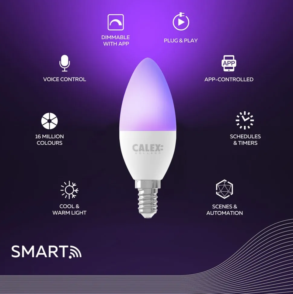 Categories: Categorie, E14 Lampen, Fitting, Lichtbronnen, Slimme Lampen Tag: Calex