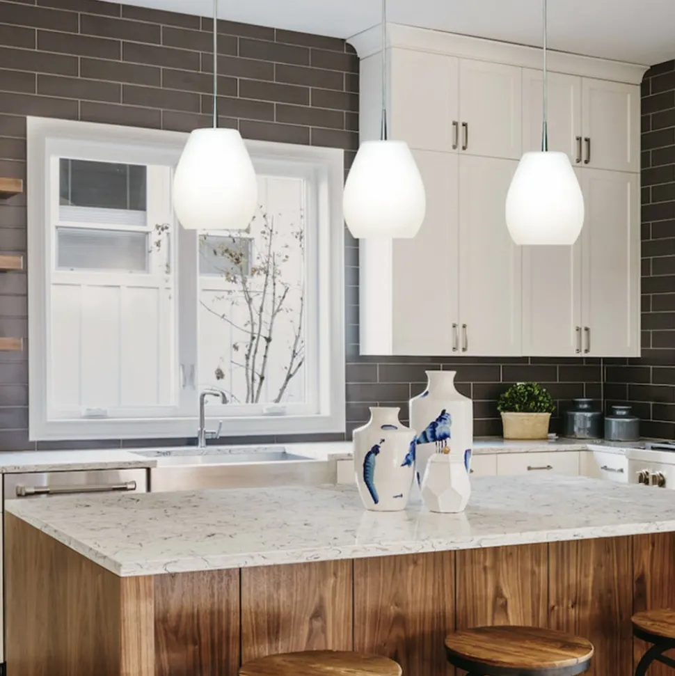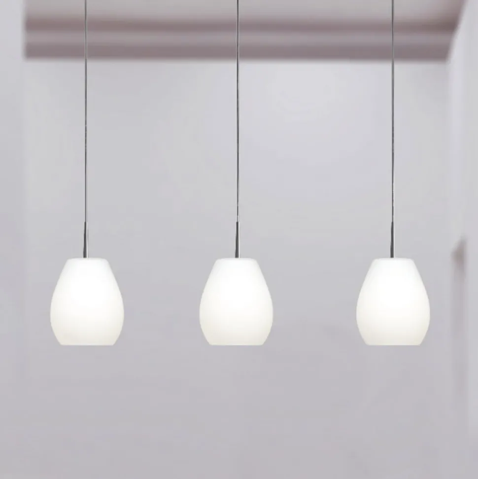 Discrete Bagan glazen hanglamp – 3-lamps Drie sierlijke glazen hanglampen sieren de Bagan hanglamp. Hun kappen zijn gemaakt van mondgeblazen glas en zien eruit als glamoureuze lichtwegbereiders die zorgen voor een gezellige sfeerverlichting boven bijvoorbeeld een eettafel of tafel. In combinatie met de aluminiumkleurige kabelophanging ontstaat een lichtbron die bijzonder goed harmonieert met een moderne woonstijl. De kappen zijn gemaakt van mondgeblazen glas. Door het fabricageproces kunnen er kleine variaties zijn zoals luchtinsluitingen enz.; elk exemplaar is uniek – extern dimbaar