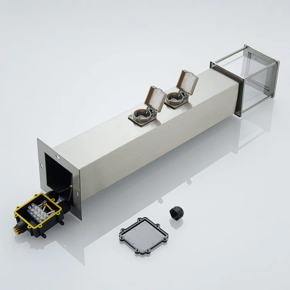 Praktisch voor in de tuin en op het erf: de Caspa tuinpadverlichting van roestvrij staal met twee geïntegreerde stopcontacten Deze tuinpadverlichting vervult een tweeledig doel, want ze zorgt niet alleen voor licht rond het huis en de tuin, maar ook voor elektriciteit in de vorm van twee stopcontacten die aan het roestvrijstalen frame van de verlichting zijn bevestigd en door twee kleppen worden afgedekt. Het frame is gemaakt van V2A roestvrij staal en is roestbestendig, terwijl het doorzichtige polycarbonaat inzetstuk robuust en breukvast is, wat natuurlijk een belangrijk voordeel is in buitenruimtes. Hier wordt de lichtvoorziening gecombineerd met de beschikbaarheid van stroom uit een stopcontact, zodat elektrisch aangedreven tuingereedschap en andere voorwerpen die stroom nodig hebben snel en gemakkelijk kunnen worden ingeschakeld. Goed beschermd tegen vuil en vocht dankzij beschermingsgraad IP54.