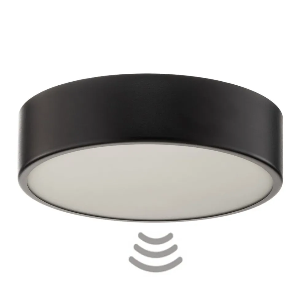 Cleo 300 plafondlamp, zwart, sensor, IP20, Ø 30 cm, metaal