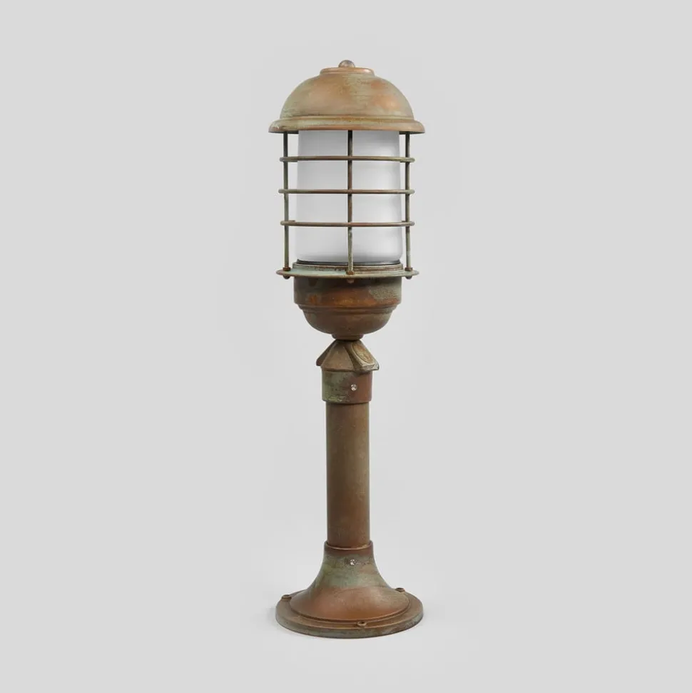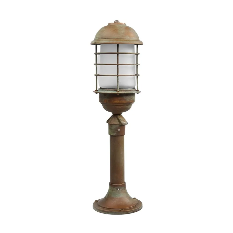 Rustieke sokkellamp Carlon met landelijke charme De robuuste sokkellamp Carlon is ideale verlichting voor eigendommen. Het armatuur is niet alleen corrosiebestendig, maar heeft ook bescherming tegen zeewater. Het aantrekkelijke uiterlijk van het antieke messing straalt landelijke charme uit en komt goed tot zijn recht op de meest uiteenlopende panden. De lichtgekleurde glazen kap wordt beschermd door een rooster en schittert in helder licht.