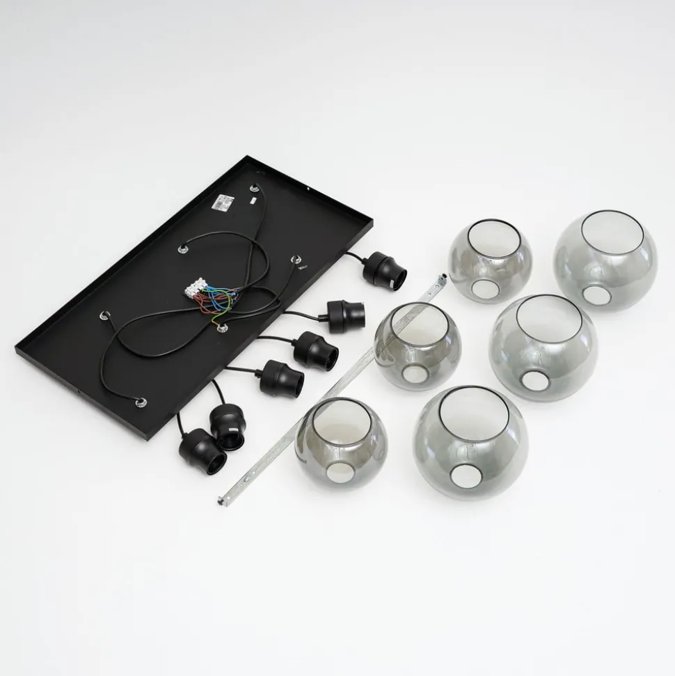 Cubus hanglamp, rookgrijs, glas, 74 cm lang, 6-lamps