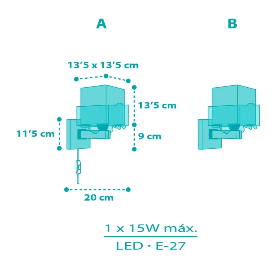 - kap – lengte/breedte 13,5 cm, hoogte 13,5 cm; wandelement breedte/hoogte 11,5 cm