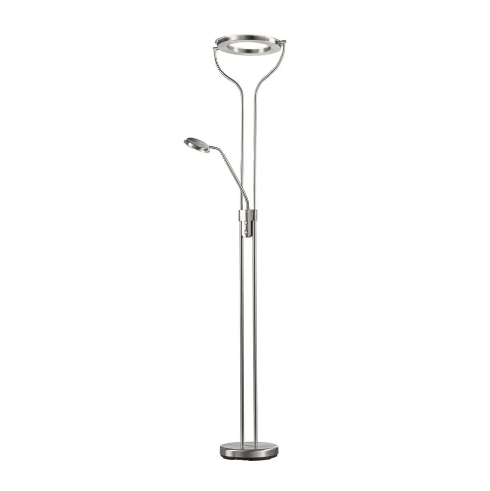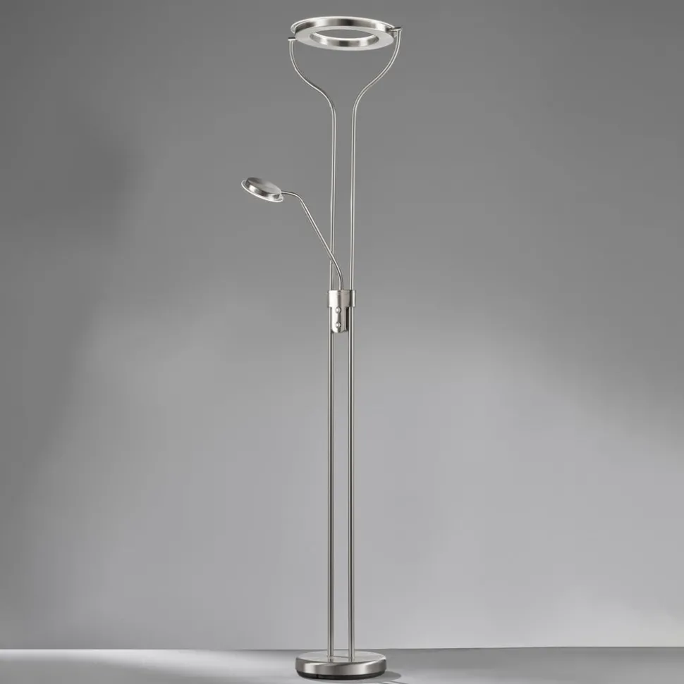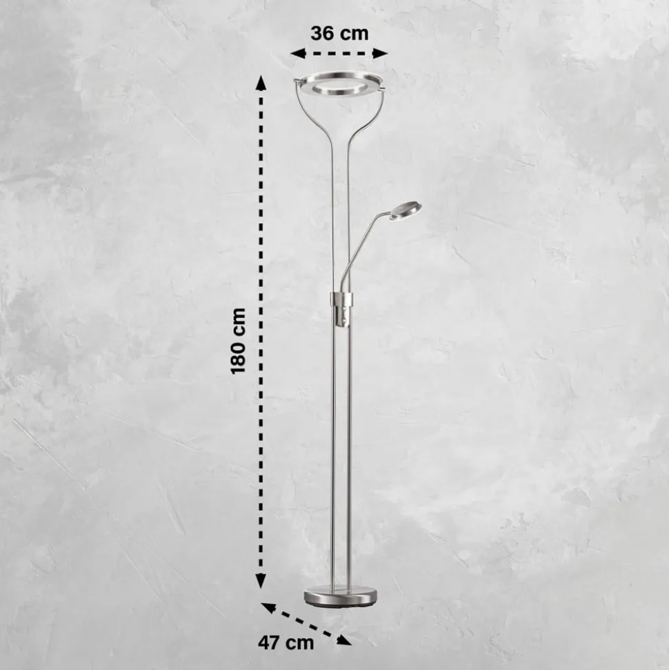 Davos LED vloerlamp met leeslamp – flexibel en efficiënt Het moderne ontwerp van de Davos LED vloerlamp is uitgerust met een uplighter en een LED leeslamp. Dit garandeert een indirecte lichtemissie naar het plafond voor een sfeervol verlichtingseffect en voldoende lichtverspreiding door de leeslamp. Beide lichtbronnen kunnen afzonderlijk worden geschakeld en gedimd – traploos dimbaar via een sensordimmer – met regelbare lichtkleur (CCT): 2 warmwittinten en universeel wit